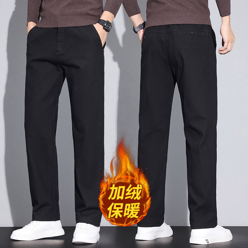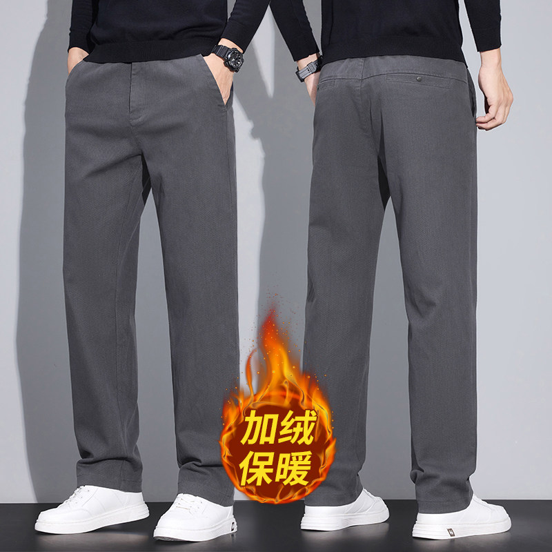 啄木鸟加绒加厚休闲裤男士宽松直筒商务西裤2025秋冬新款长裤子