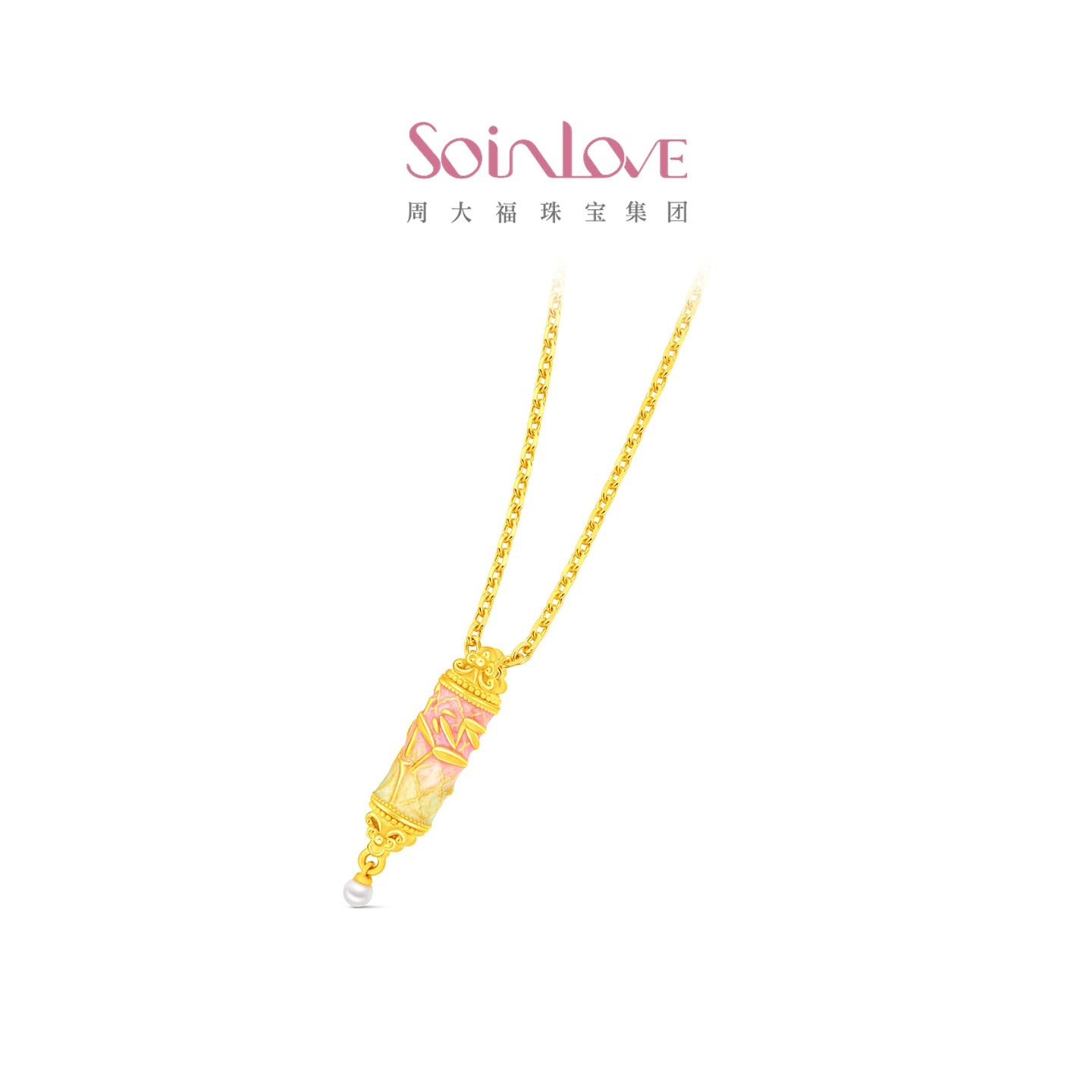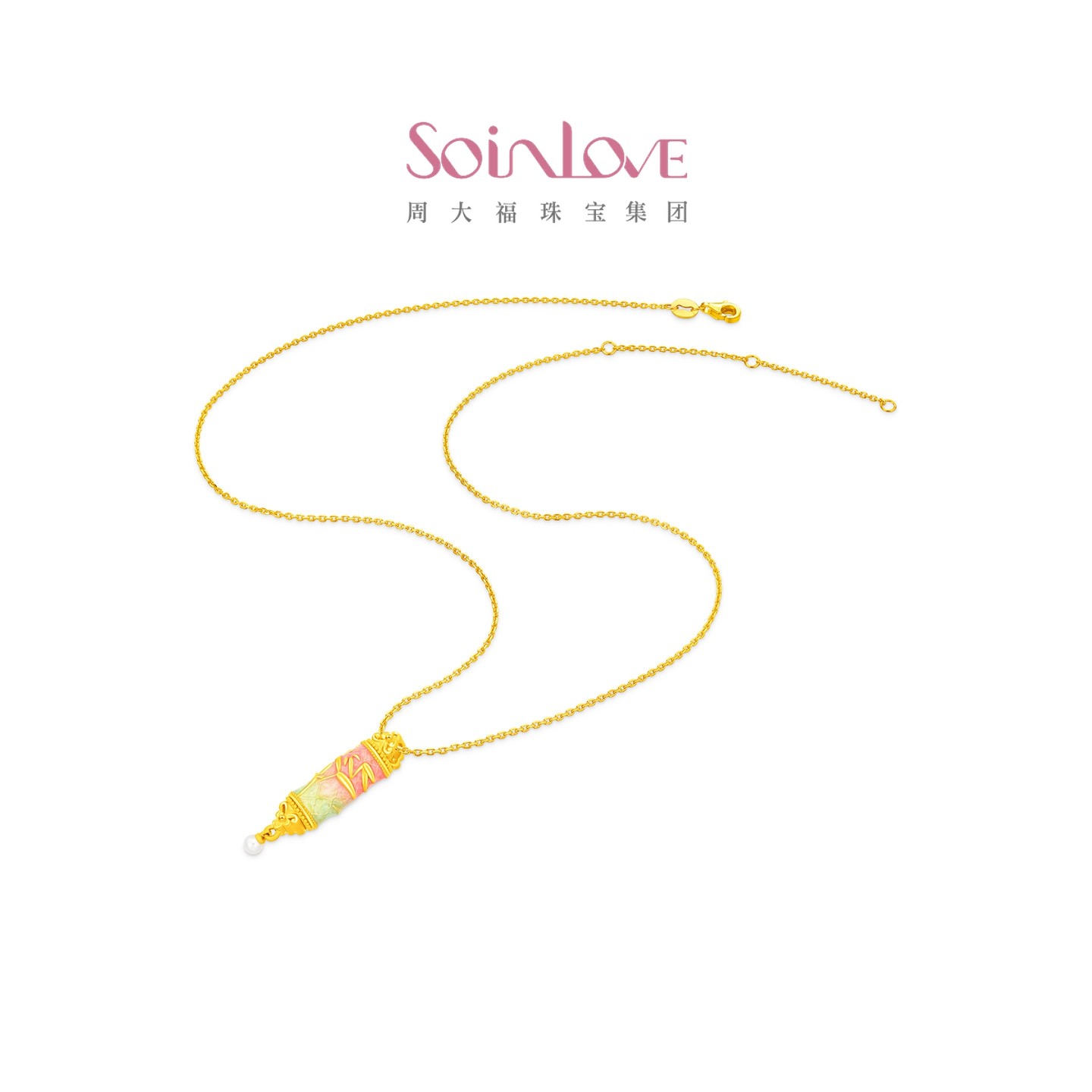 周大福SOINLOVE 蜜粉金十里红妆竹韵黄金吊坠 VR1745
