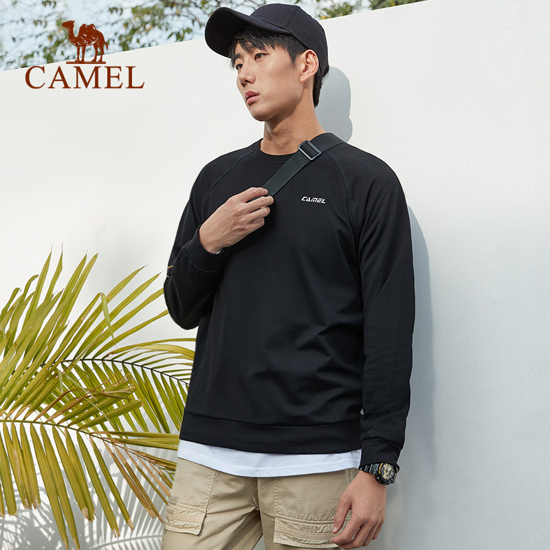 骆驼卫衣男长袖上衣2025秋冬新款运动服纯色宽松圆领男装套头外套