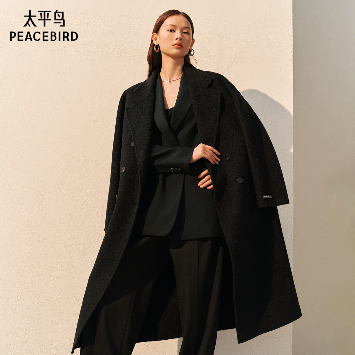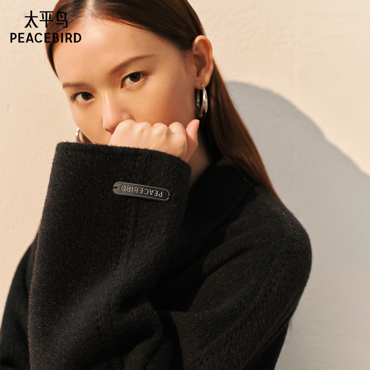 太平鸟大师甄绒系列阿尔巴卡羊驼毛传承大衣女双面呢冬短款外套*