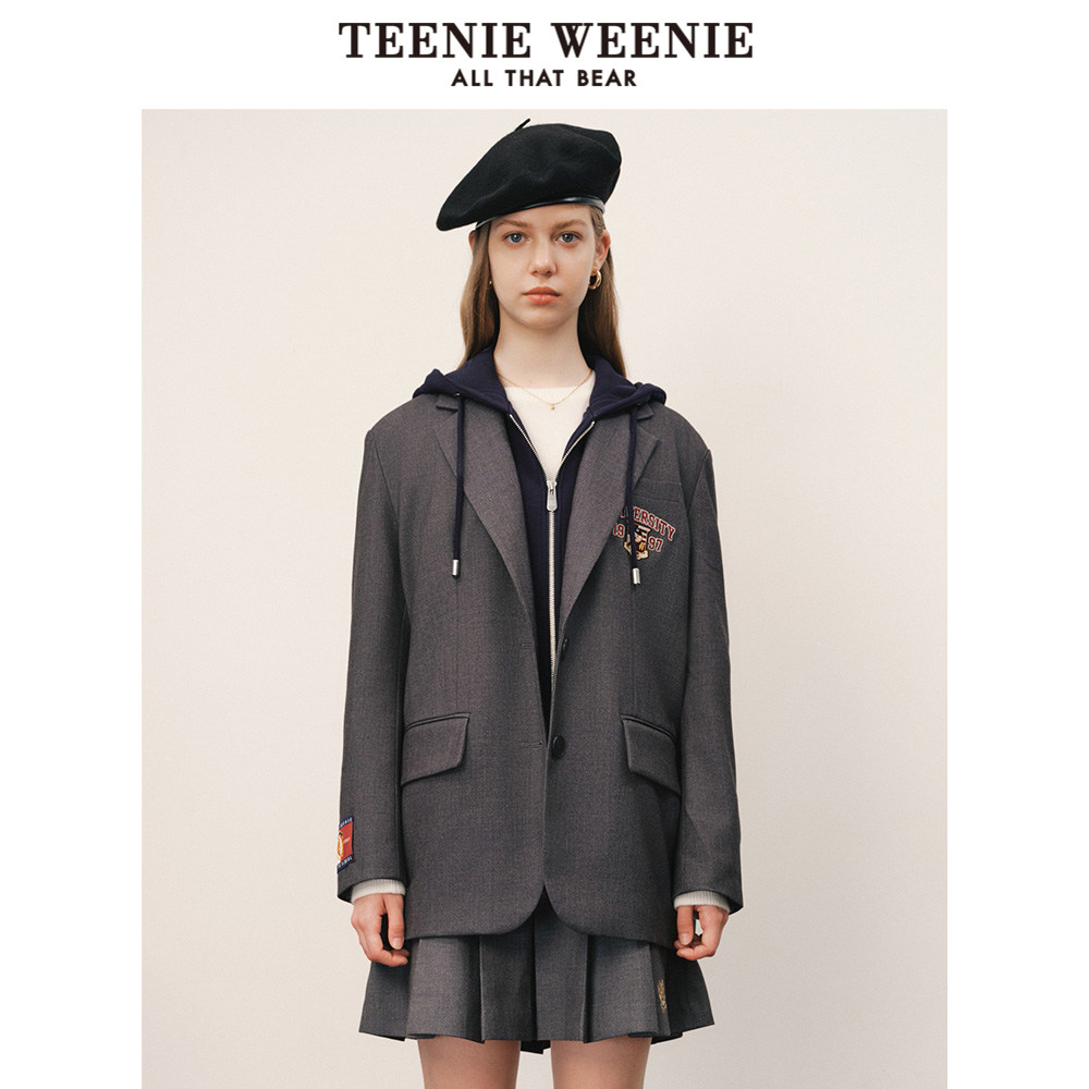 【赵露思同款】TeenieWeenie小熊奥莱女装秋季假两件连帽西装外套
