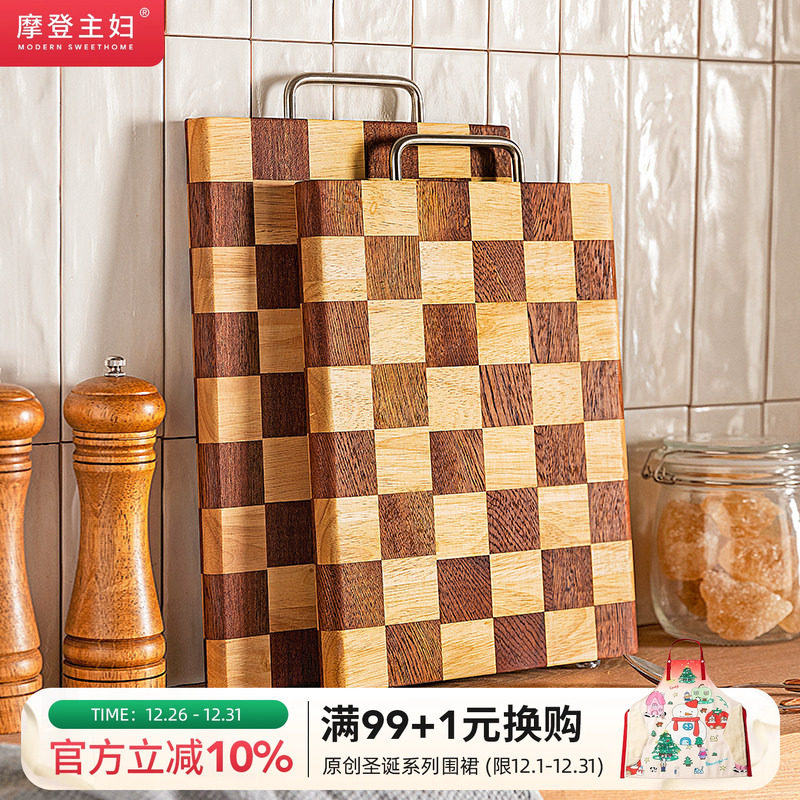 摩登主妇棋盘格菜板乌檀木抗菌防霉实木切菜案板厨房家用水果砧板