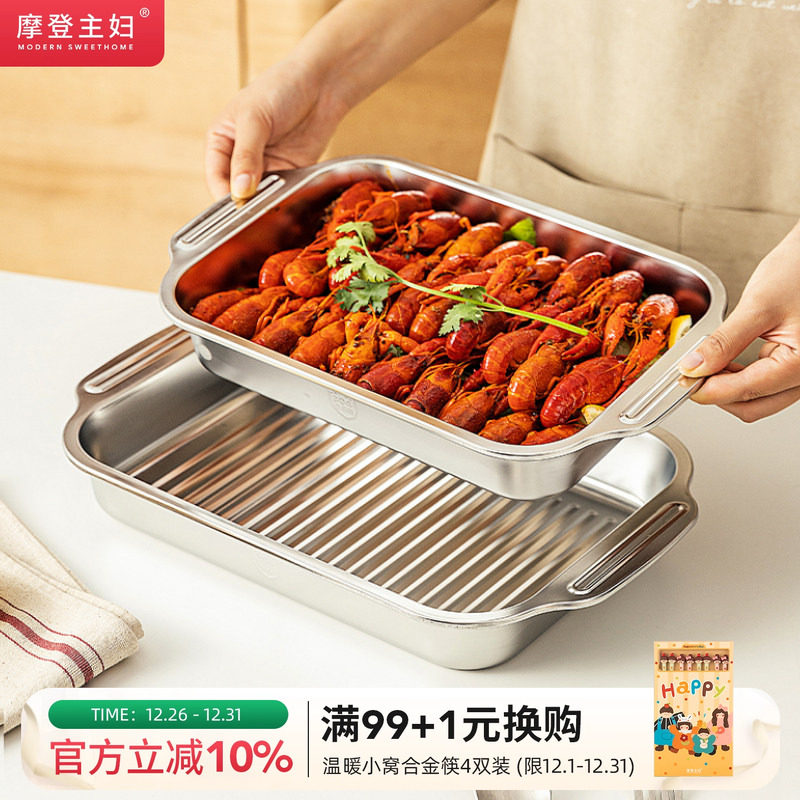 摩登主妇烤鱼盘小龙虾专用盘304不锈钢餐具海鲜捞汁火锅备菜托盘