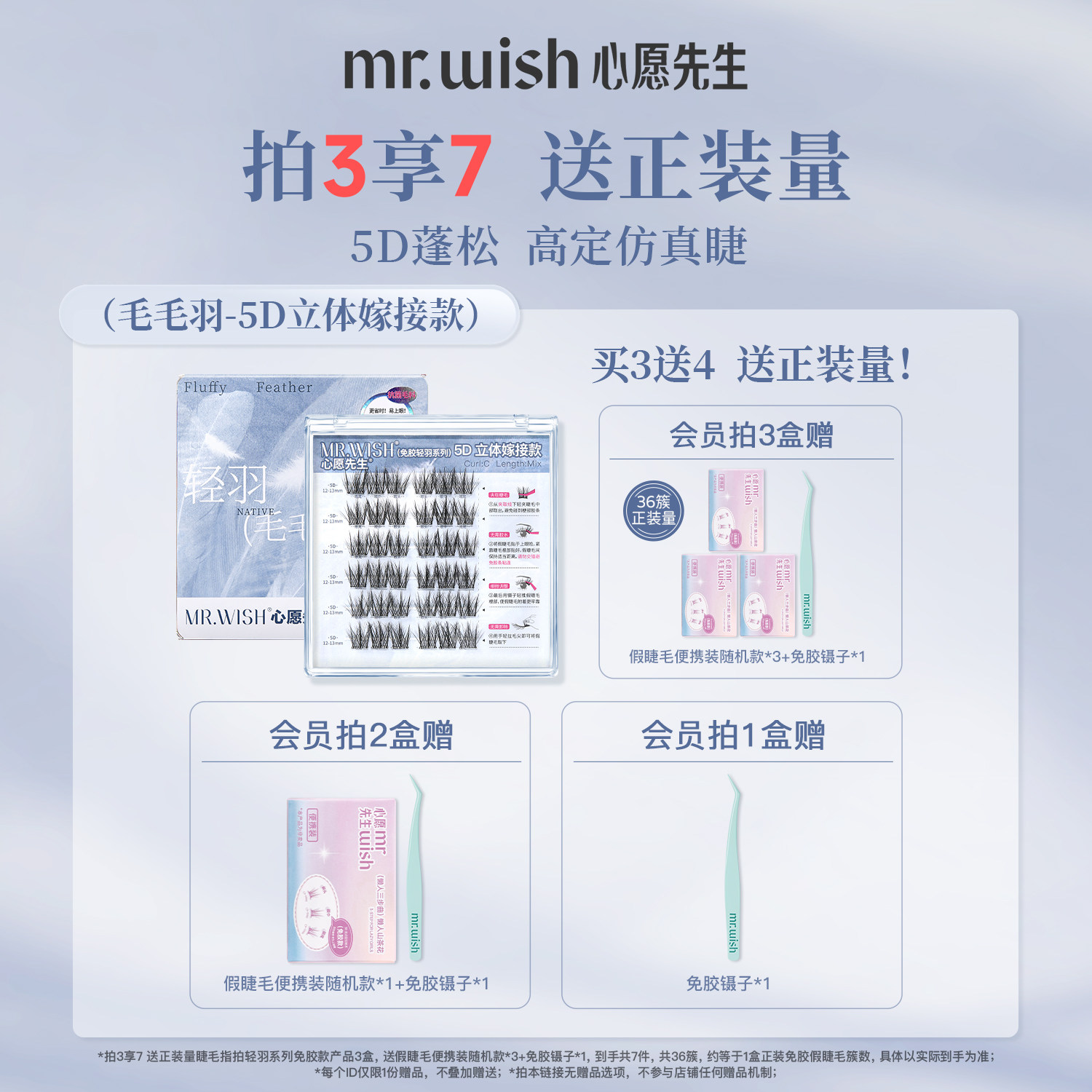 心愿先生5D立体轻羽系列原创免胶自粘假睫毛毛羽清透