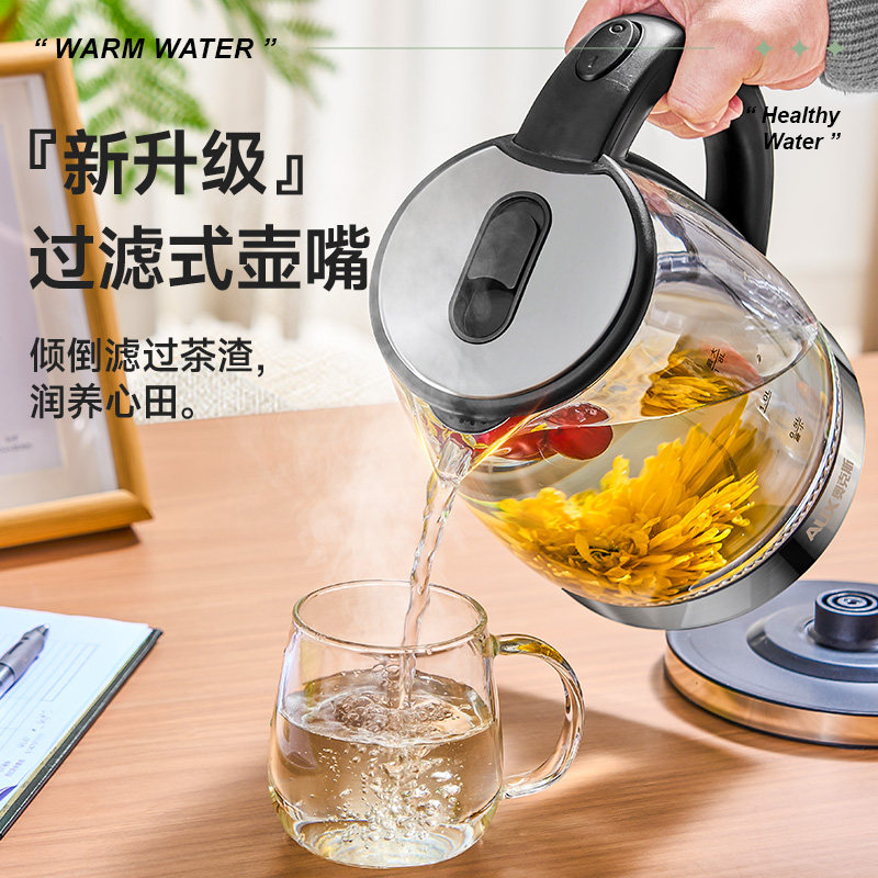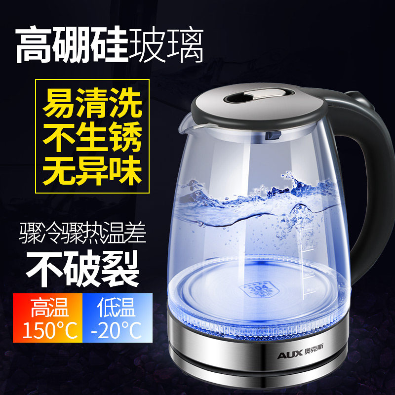 奥克斯电烧水壶家用热水壶自动断电透明蓝光玻璃煮茶器电热不锈钢