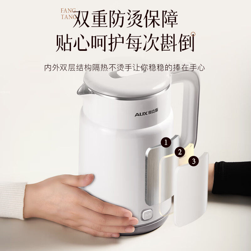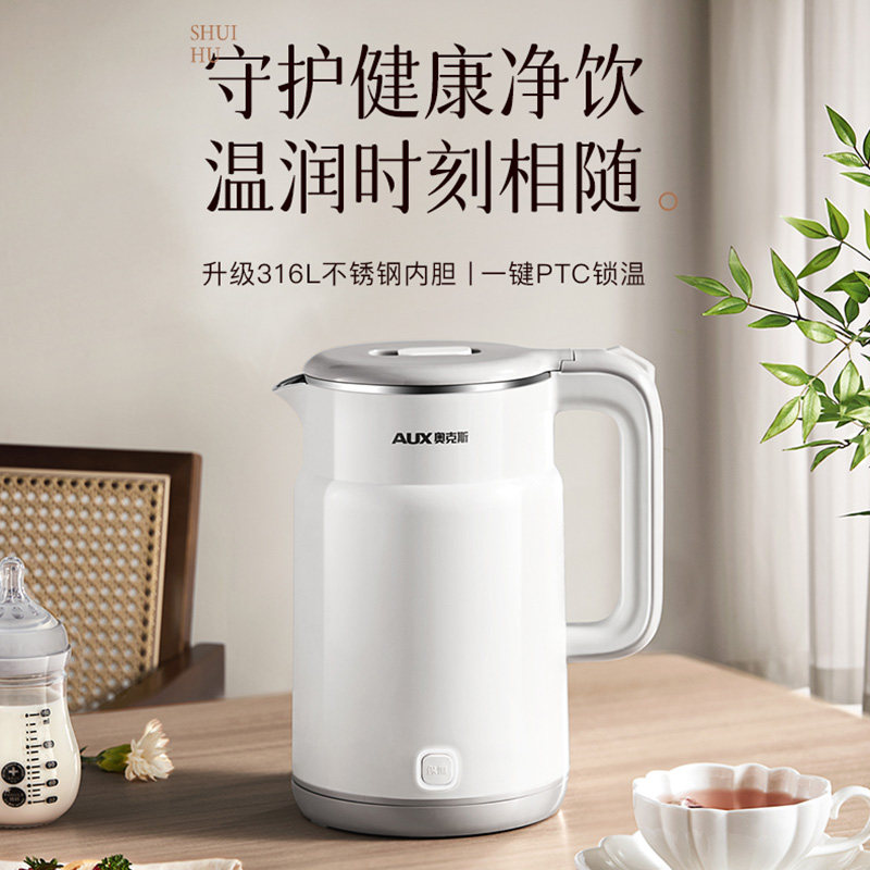 奥克斯电热水壶家用烧水壶保温宿舍新款不锈钢热水壶恒温双层无缝