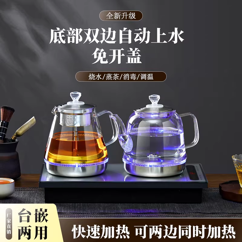 AUX奥克斯电热烧水壶一体茶台全自动上水嵌入式茶桌泡茶智能定时