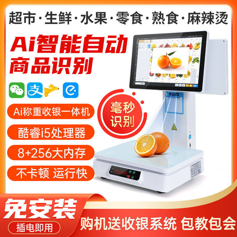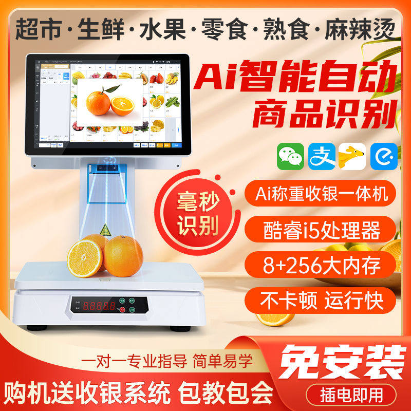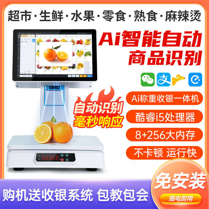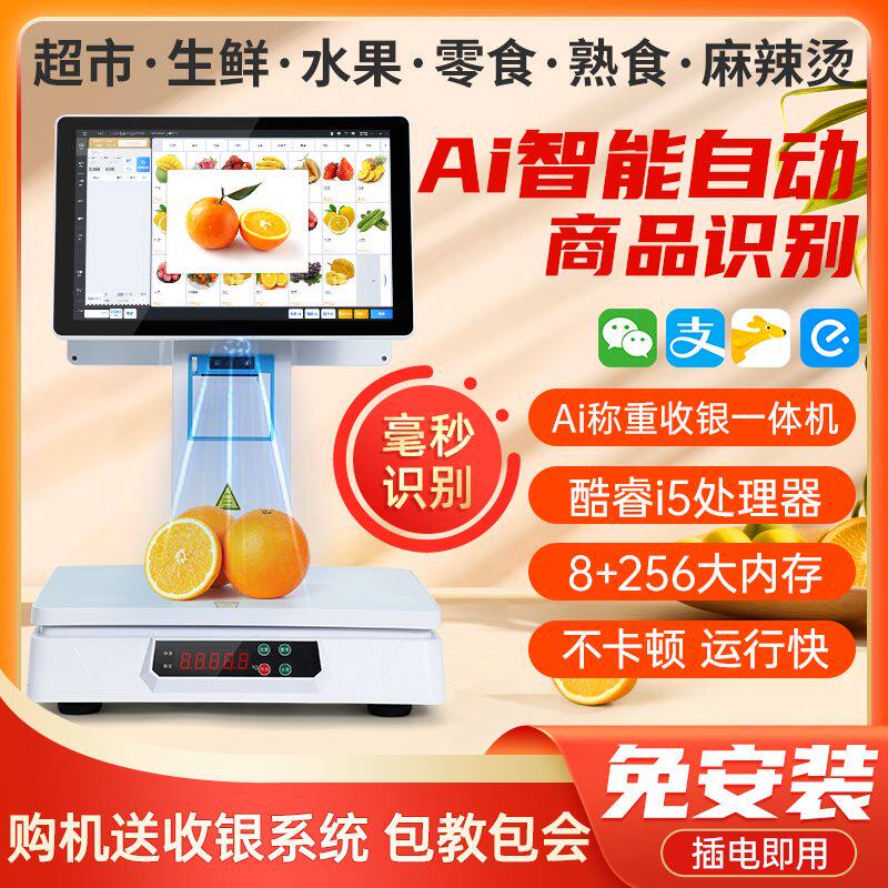 新款ai自动识别智能称重收银一体机生鲜水果蔬菜超市麻辣烫电子秤