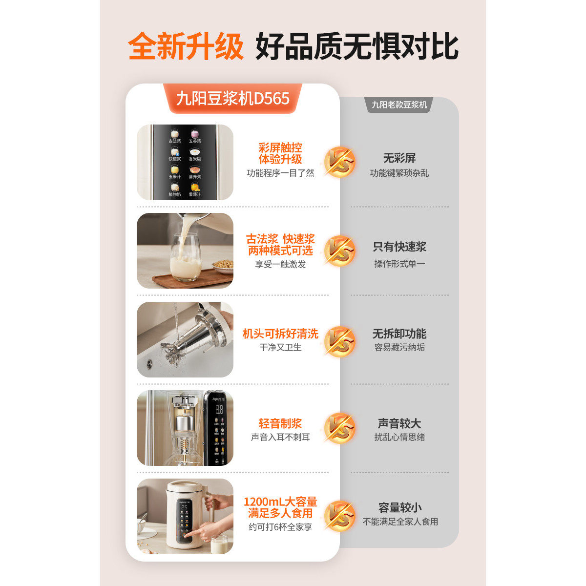 九阳豆浆机破壁机家用古法大容量全自动多功能官方搅拌料理机D565