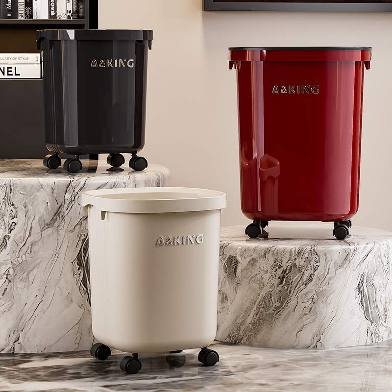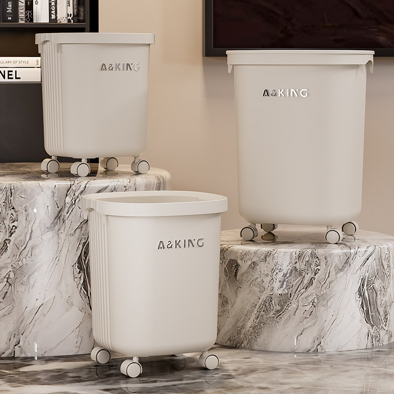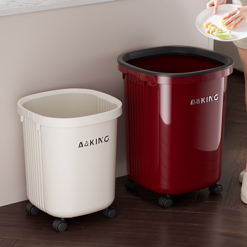 垃圾桶家用2025新款大容量可移动免弯腰厨房客厅轻奢高档带轮无盖