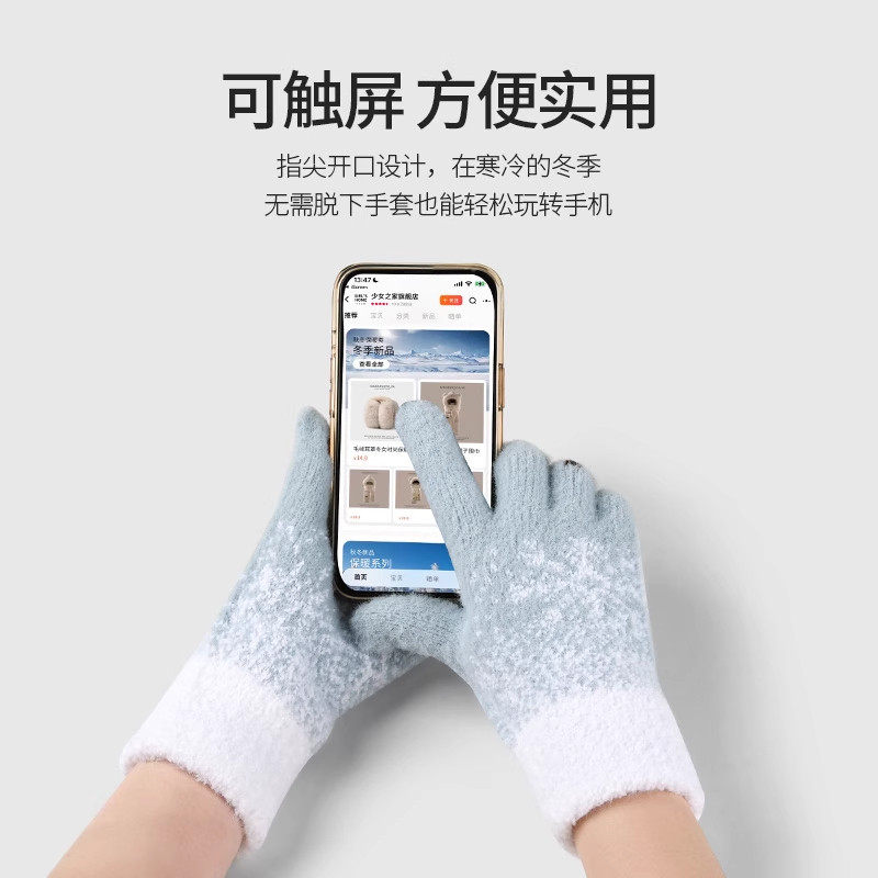 miniso名创优品冬季手套女保暖加绒针织触屏手套学生通勤户外防冻