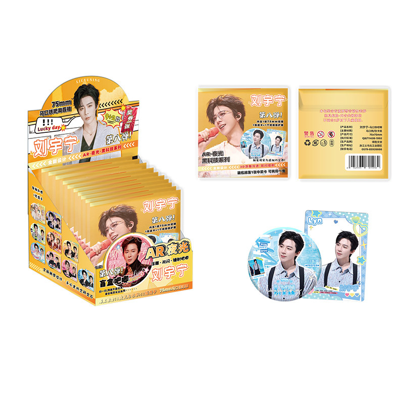 刘宇宁周边51件礼盒小卡明信片吧唧徽章色纸立牌镭射票礼盒礼物
