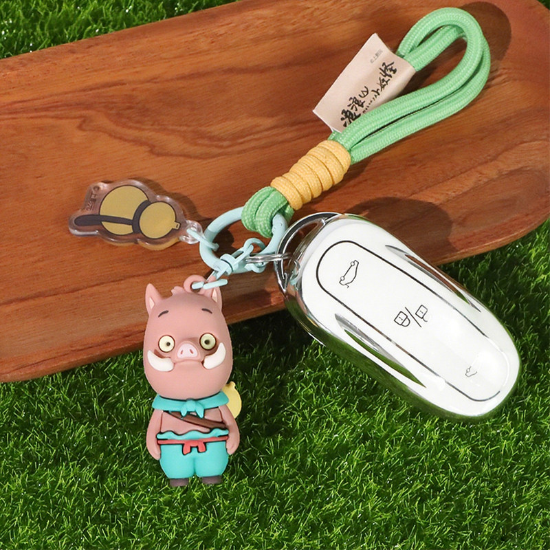 卡通马上有钱钥匙扣创意汽车钥匙链圈皮革手工编织绳书包挂件礼物