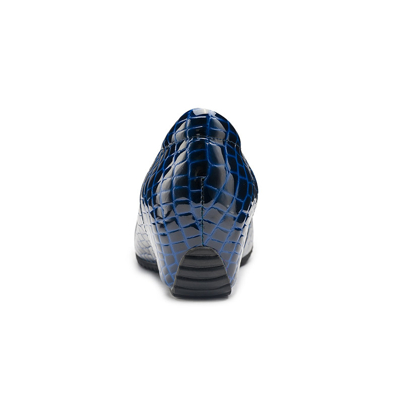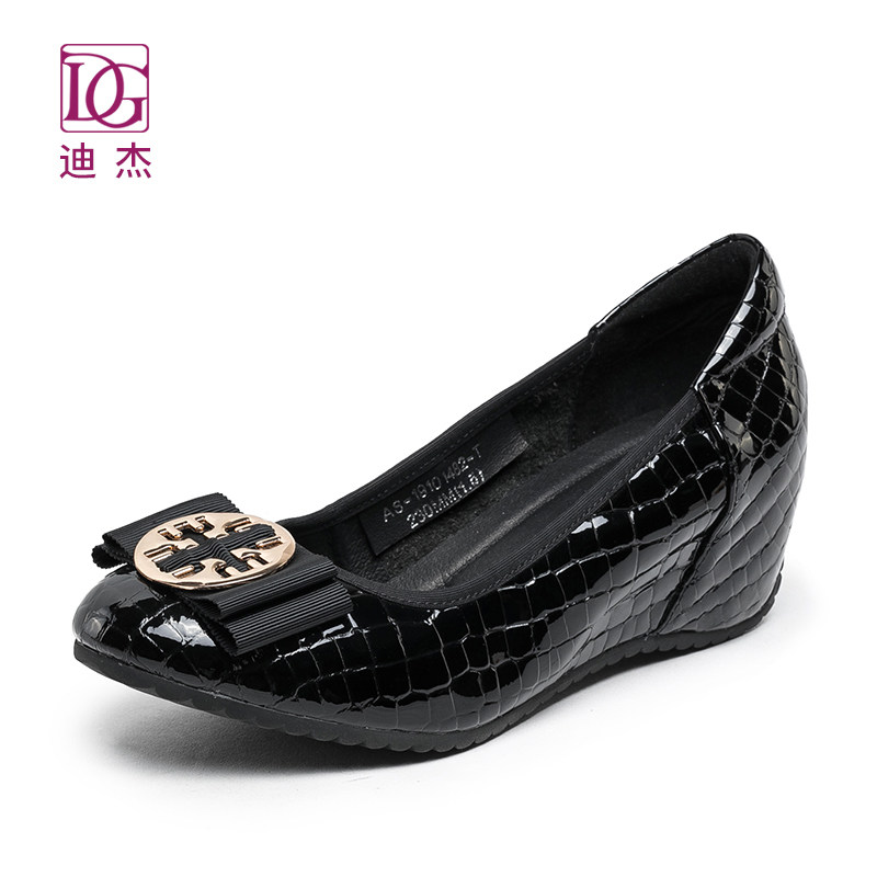 dg漆皮浅口坡跟单鞋女2025春季新款内增高圆头真皮舒适妈妈鞋皮鞋