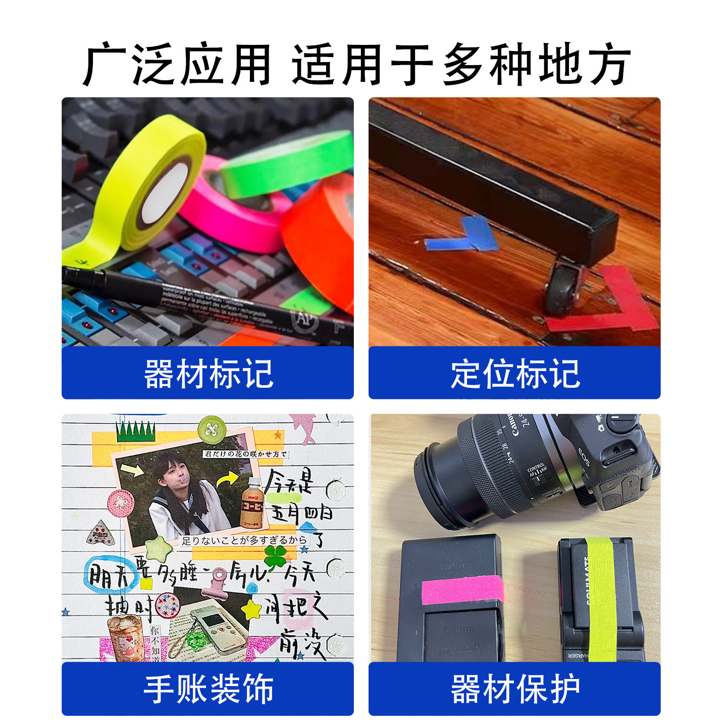 影视荧光布基胶带荧光彩色胶带舞台定位大力胶无痕标记号电影摄影乐器器材设备标识舞台12/24mm定位胶布