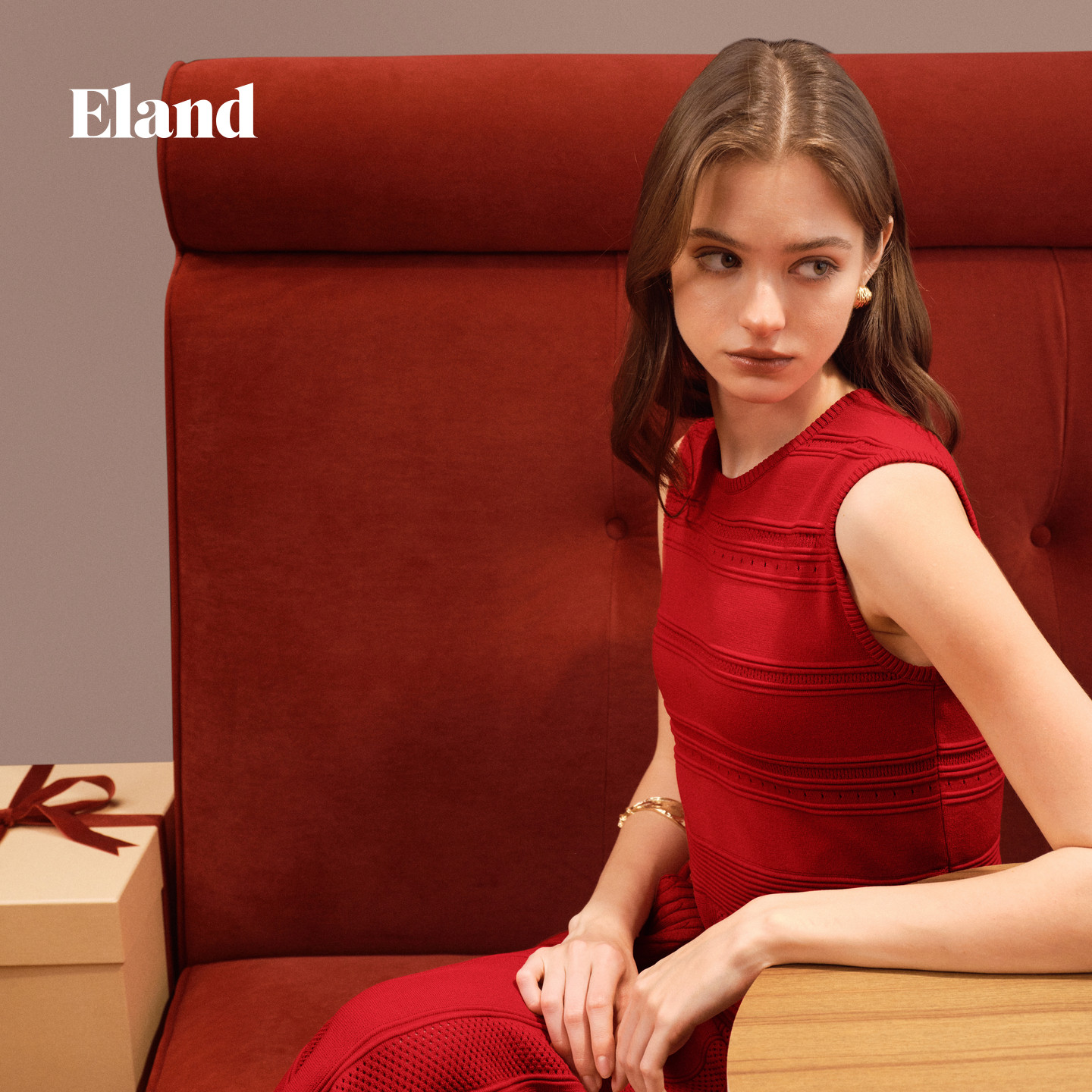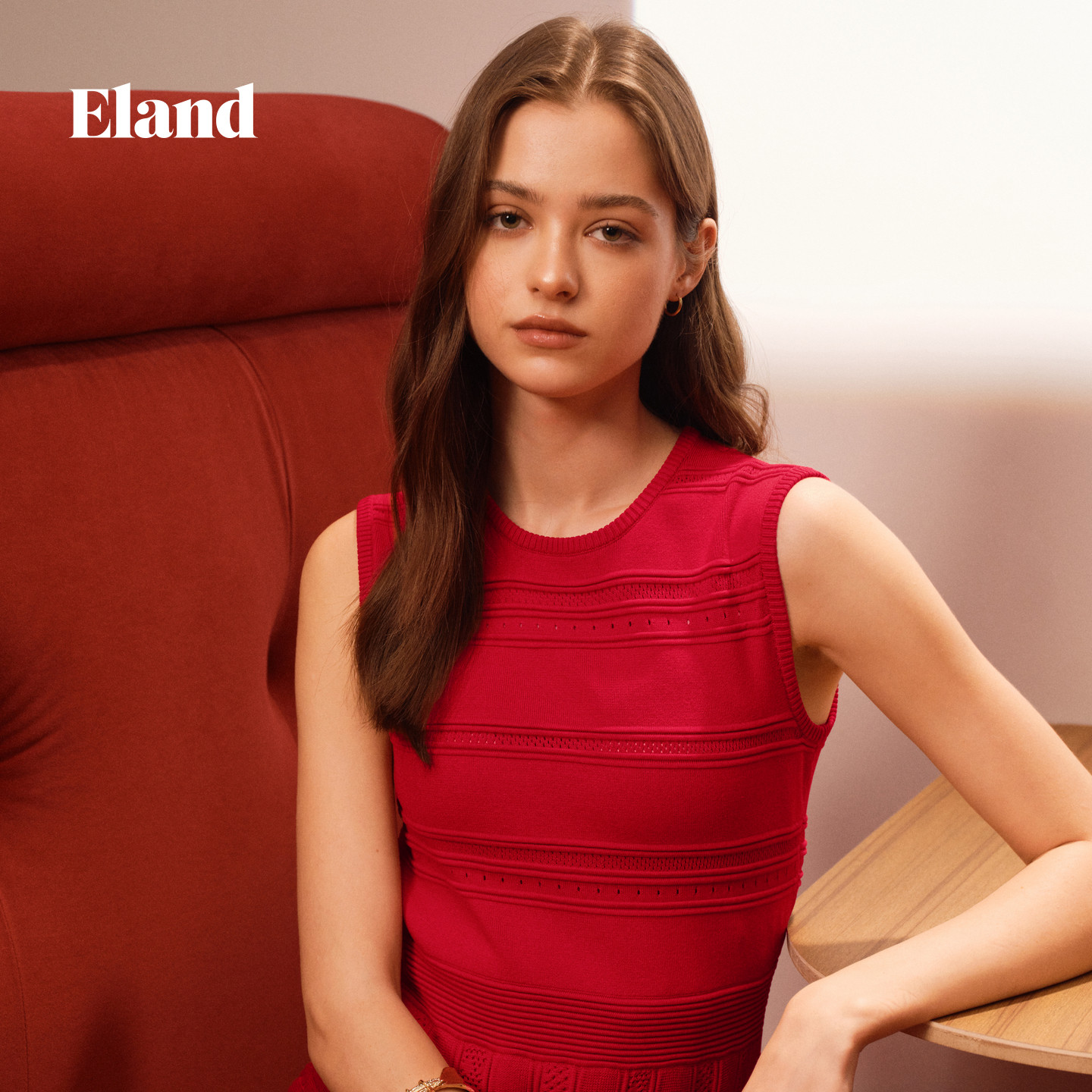 Eland衣恋连衣裙女无袖圆领针织裙优雅收腰百褶裙红裙2026春新款
