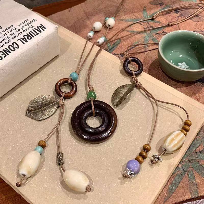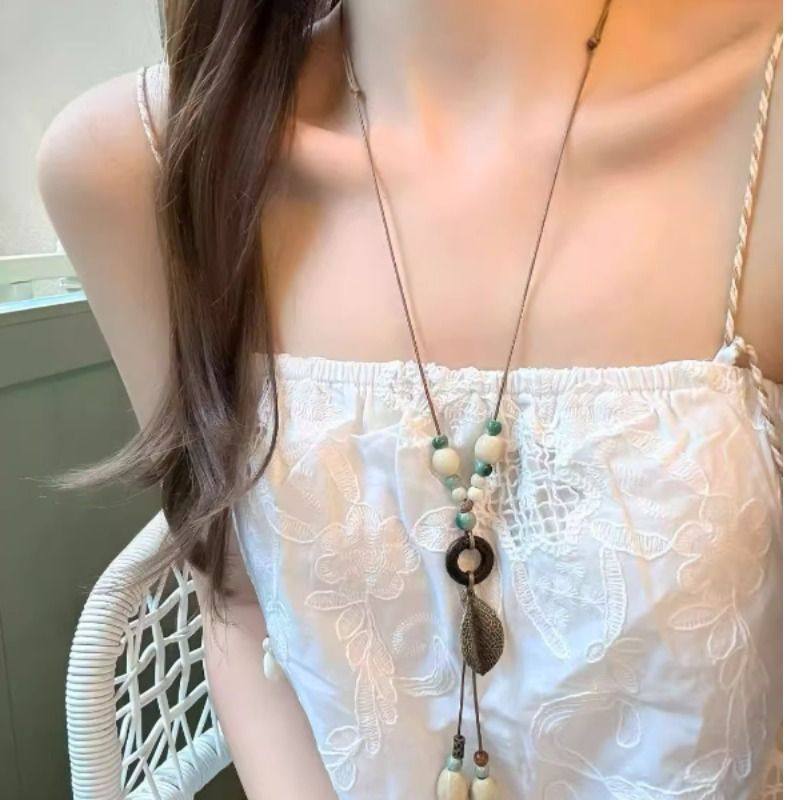 梧桐琥珀 新中式长款禅意风树叶吊坠项链波西米亚民族风挂脖配饰