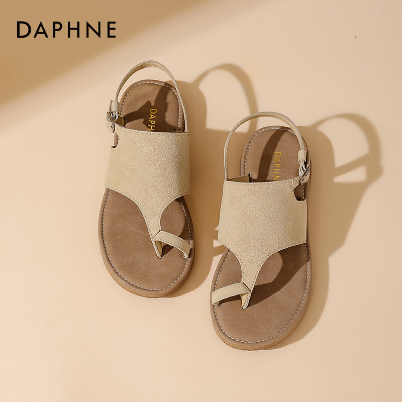 达芙妮复古夹趾凉鞋女2025新款夏季平底罗马凉鞋休闲简约女士凉鞋