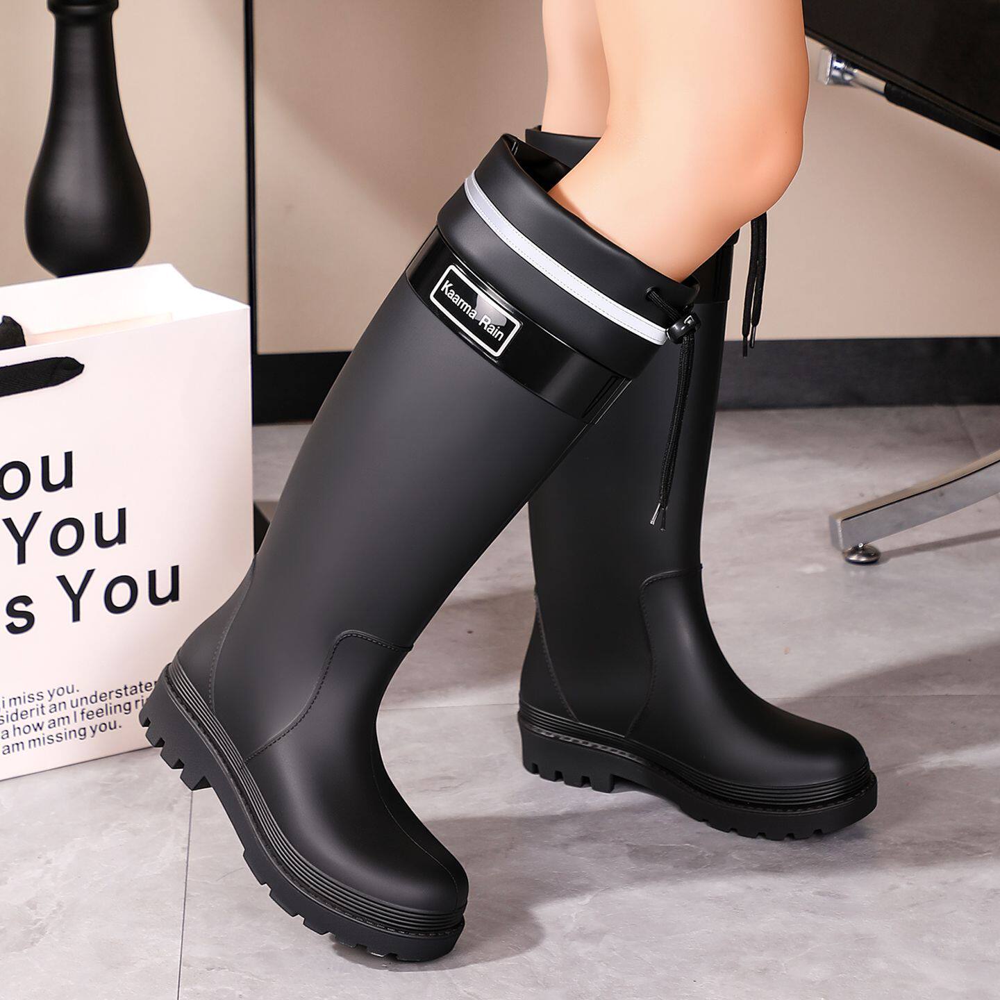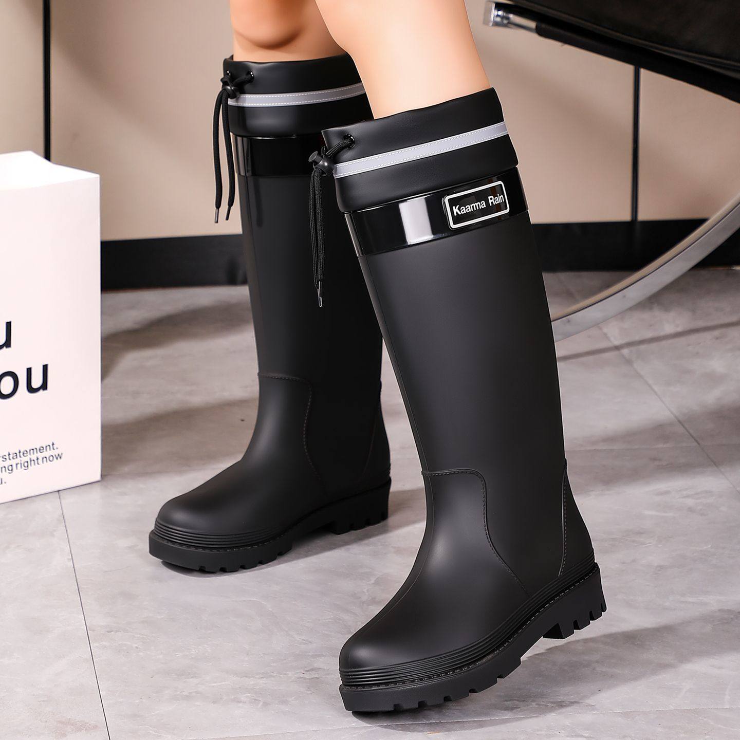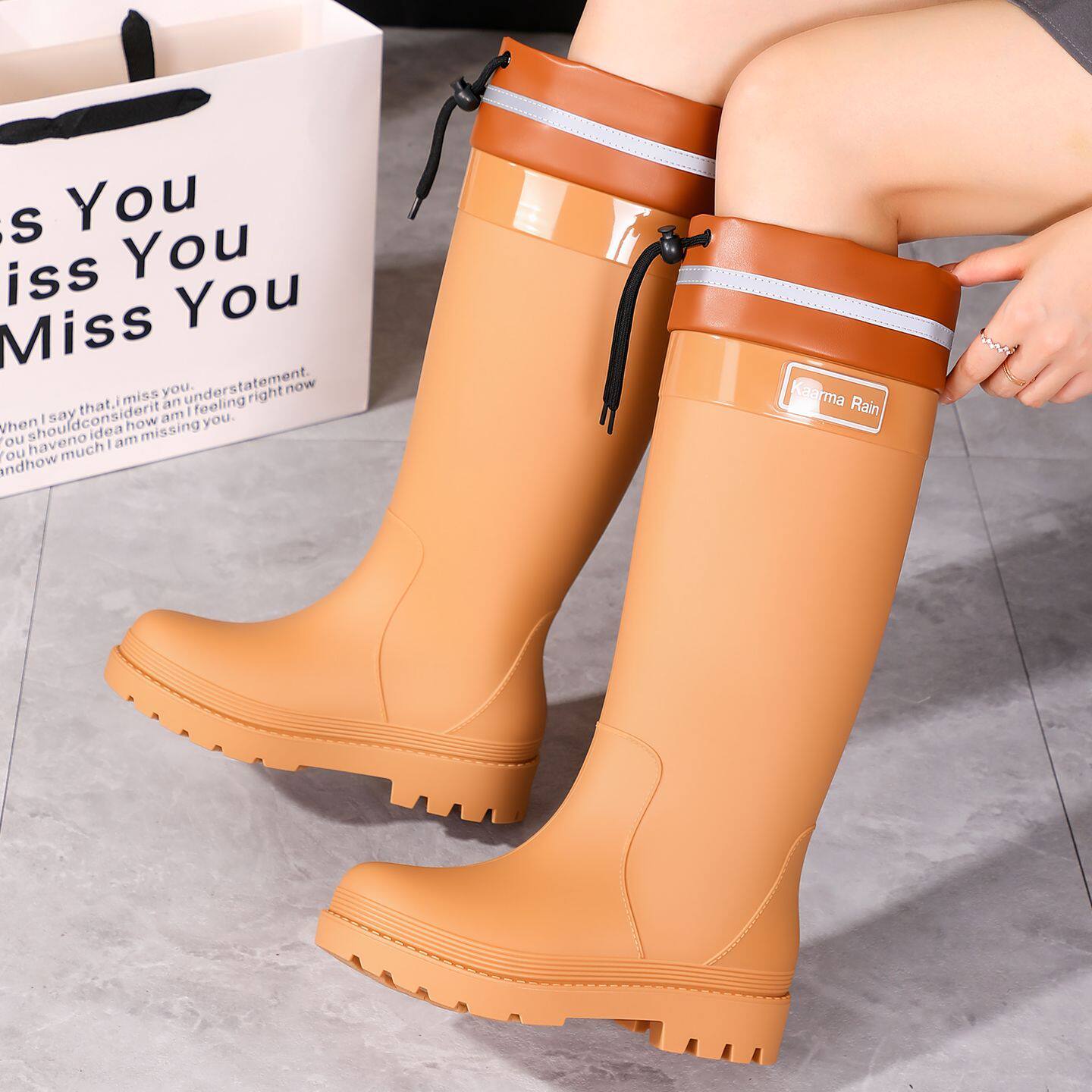 束口女士水雨鞋女款加厚时尚雨靴防滑高筒成人厨房保暖防水口中筒
