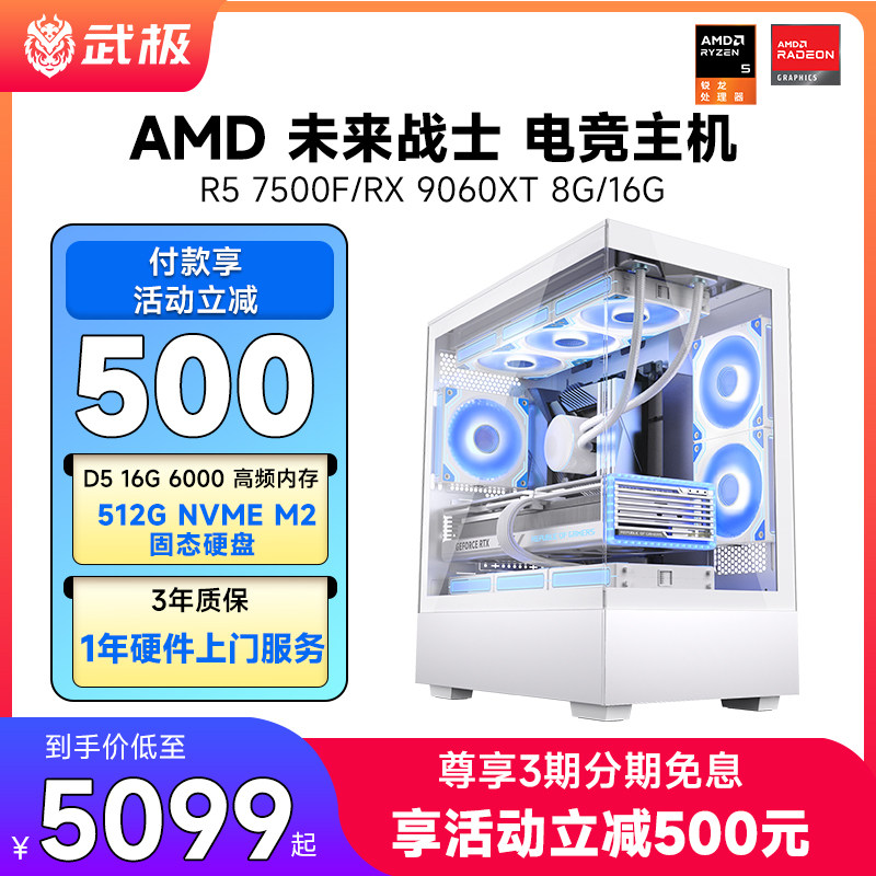 【3期免息】武极 AMD 锐龙R5 7500F/9600X/RX9060XT家用办公设计电脑主机台式机整机组装机DIY游戏主机