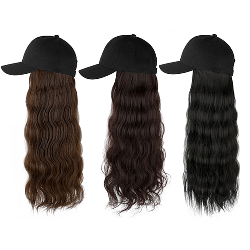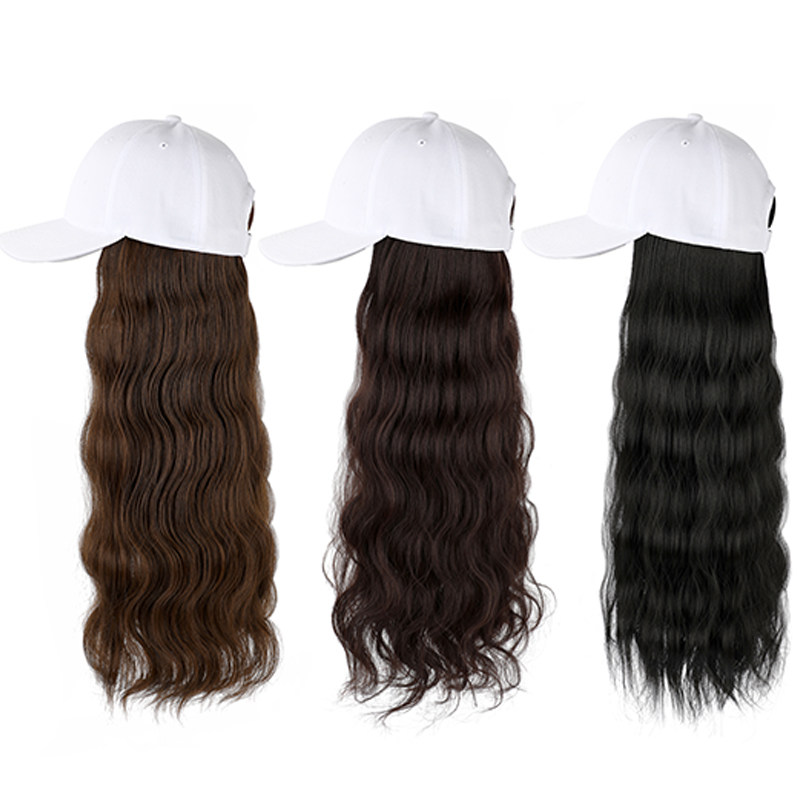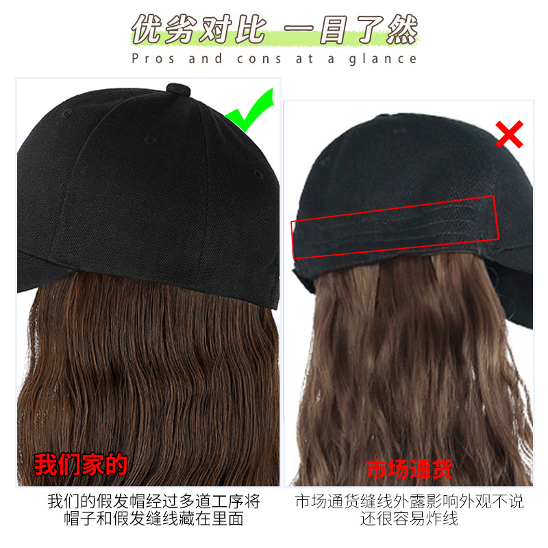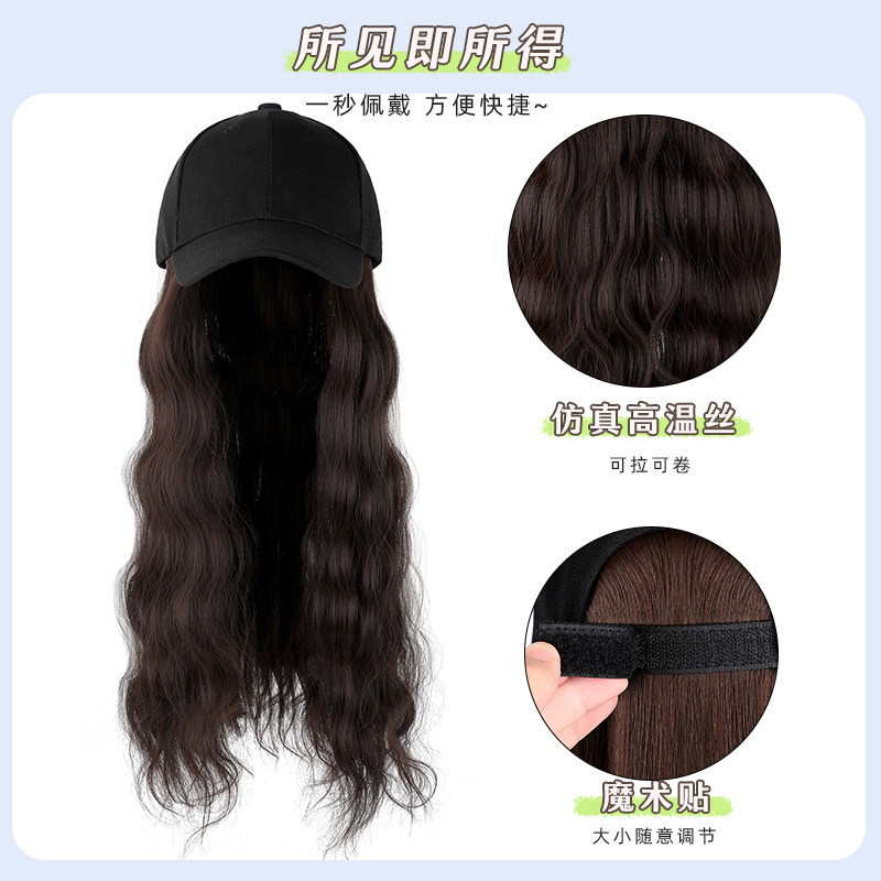 韩式帽子假发一体女长发全头套式四季可调节鸭舌帽棒球帽仿真发套