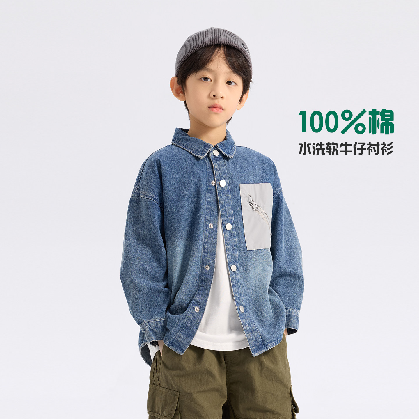 派町童装男童上衣2026春季新款儿童水洗牛仔衬衫大童韩版外套洋气