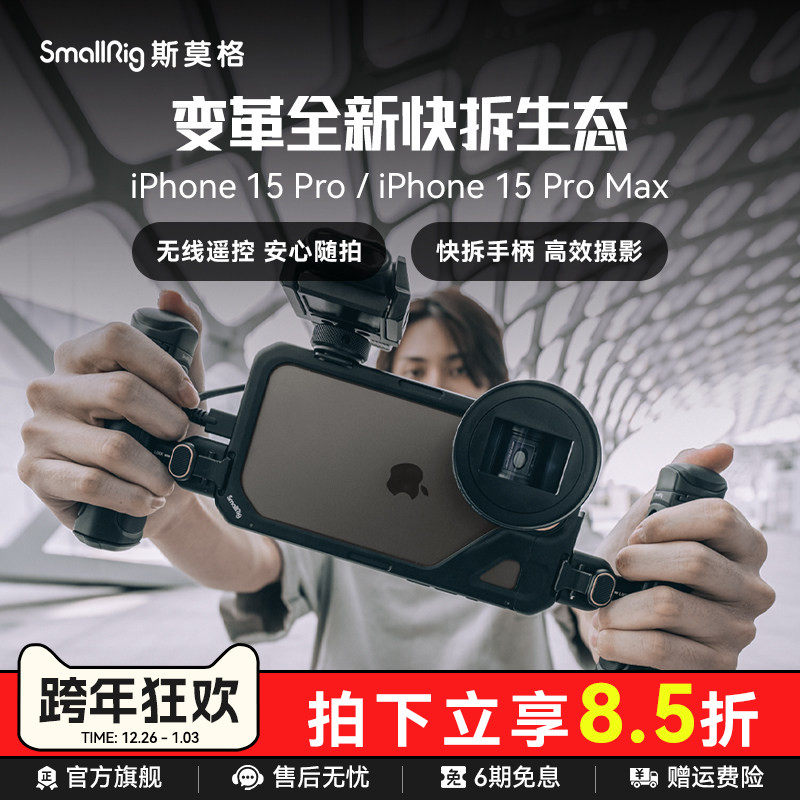 斯莫格适用iPhone15 Pro Max手机兔笼苹果15 Pro系列专用拓展框支架摄影手持拍摄镜头手机通用手柄蓝牙助拍器