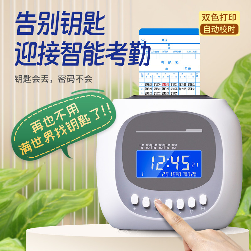 考勤机打卡机纸卡式上班打卡机员工上下班打卡器卡钟出勤学生签到机智能纸质双色打印