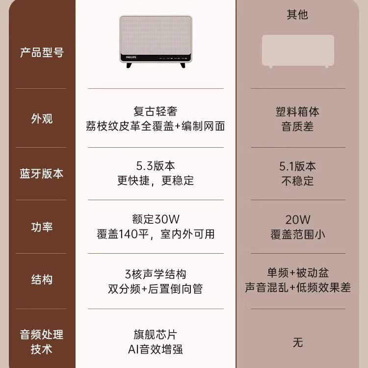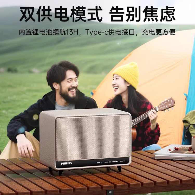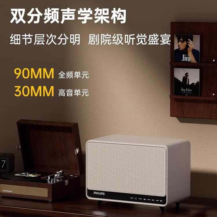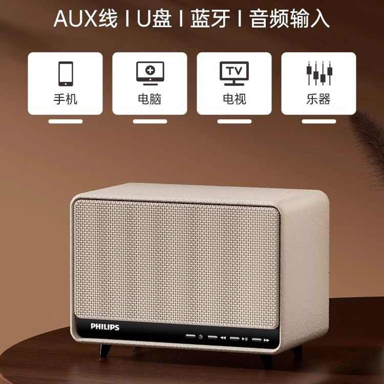 飞利浦TAS6500蓝牙音响复古桌面音箱家用客厅环绕大音量2025新款