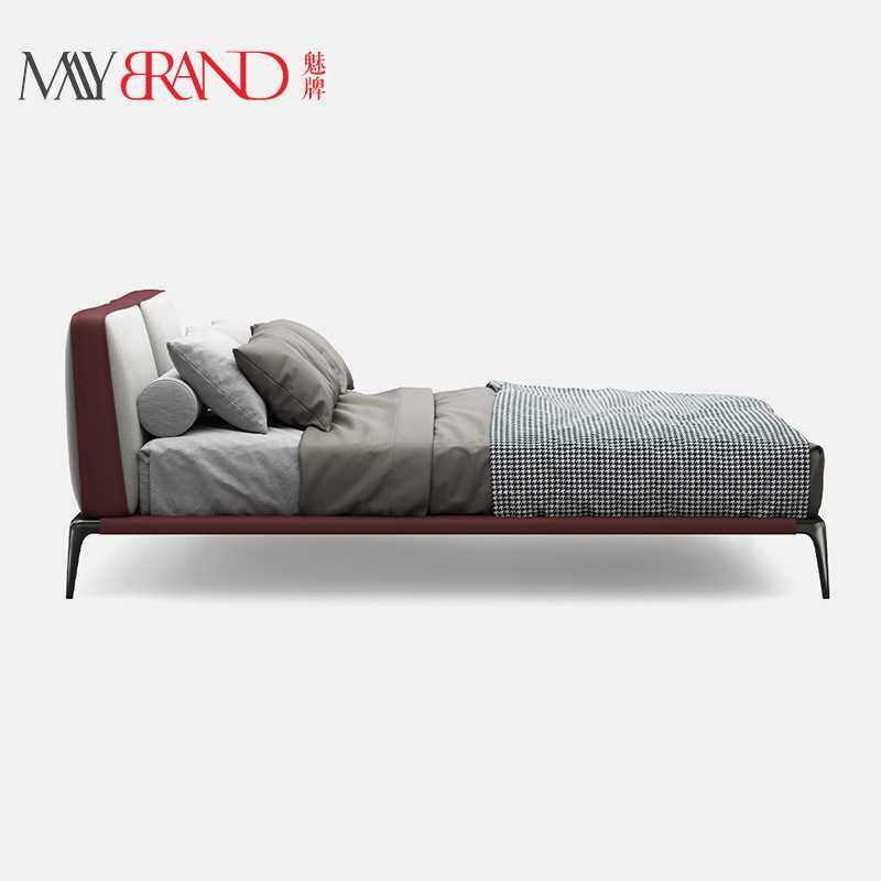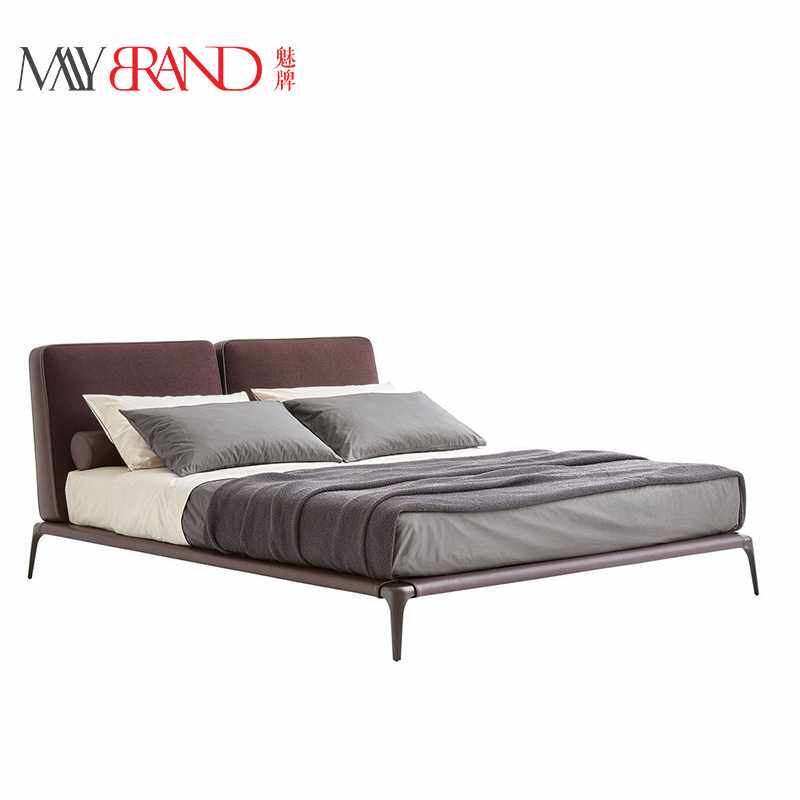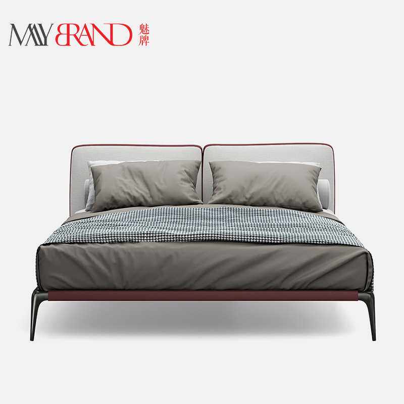 新款高档意式极简现代极简布艺床 北欧设计师款次卧齐边双人床