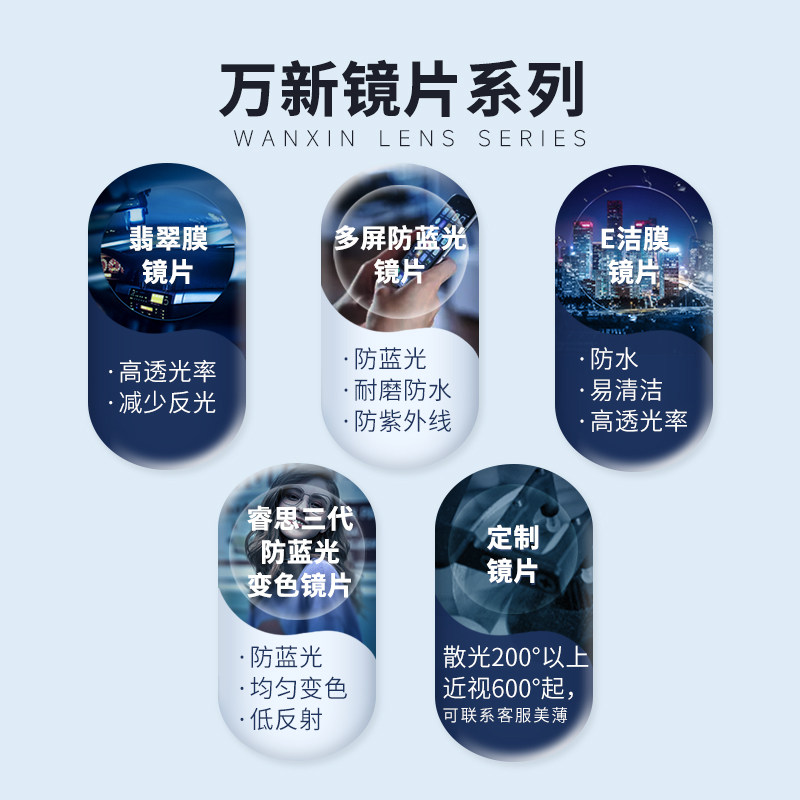 万新眼镜片可选1.67超薄防蓝光/变色近视镜片1.74定制宝岛配镜