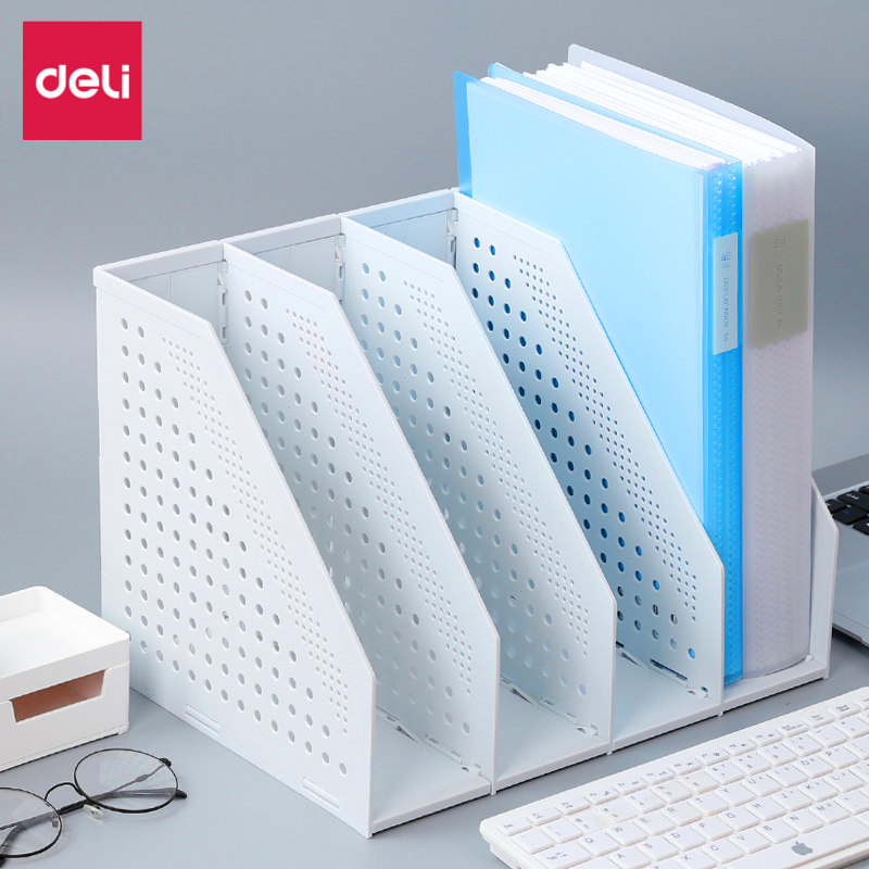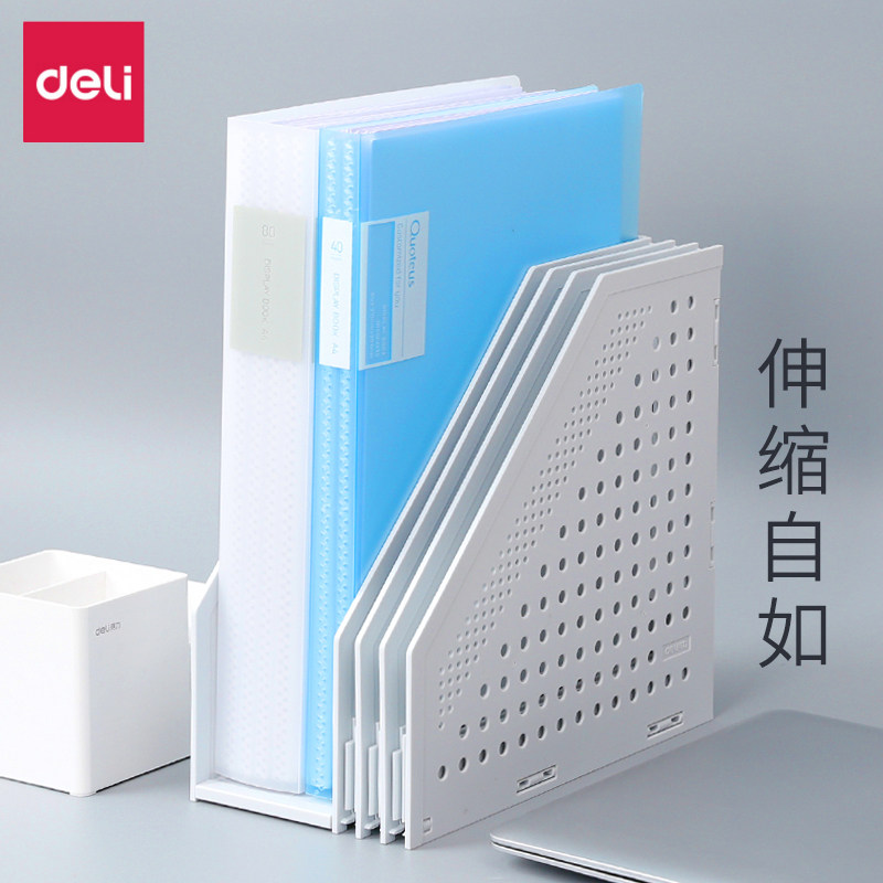 得力可折叠免安装文件架多层学生伸缩书立一体式文件架免拼装办公用桌面资料文件整理收纳置物架文件栏文件框