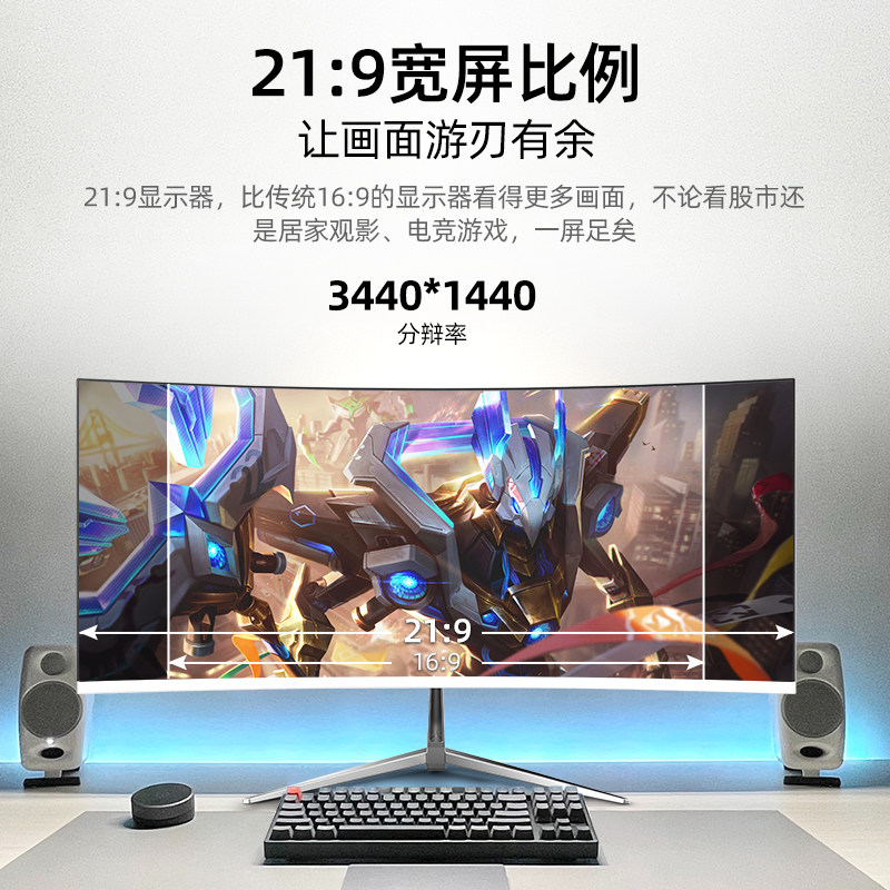 34寸曲面显示器1ms电竞游戏165Hz高刷4K高清台式电脑显示器IPS屏