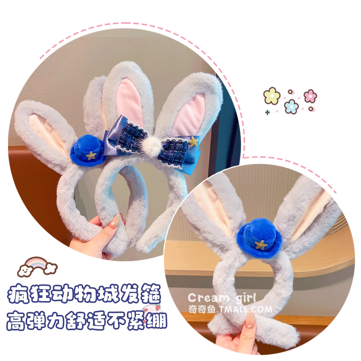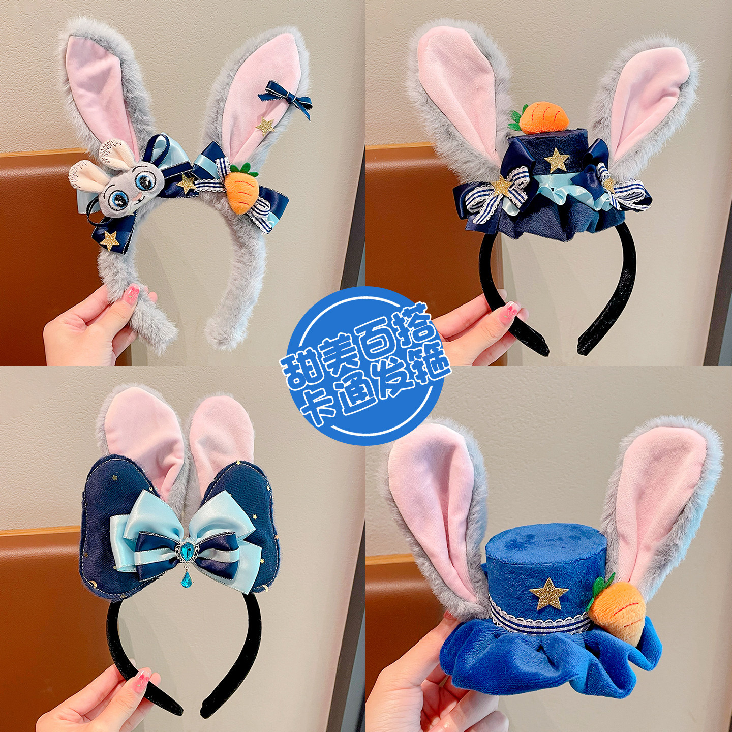 儿童卡通疯狂动物城兔耳朵帽子发夹发箍女迪士尼朱迪兔子警官头饰