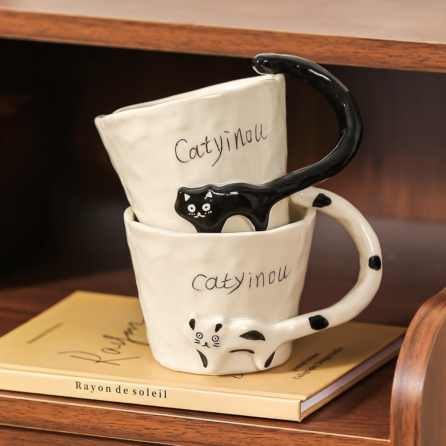 可爱喵咪马克杯家用喝水杯子大耳朵陶瓷情侣杯生日礼物早餐咖啡杯