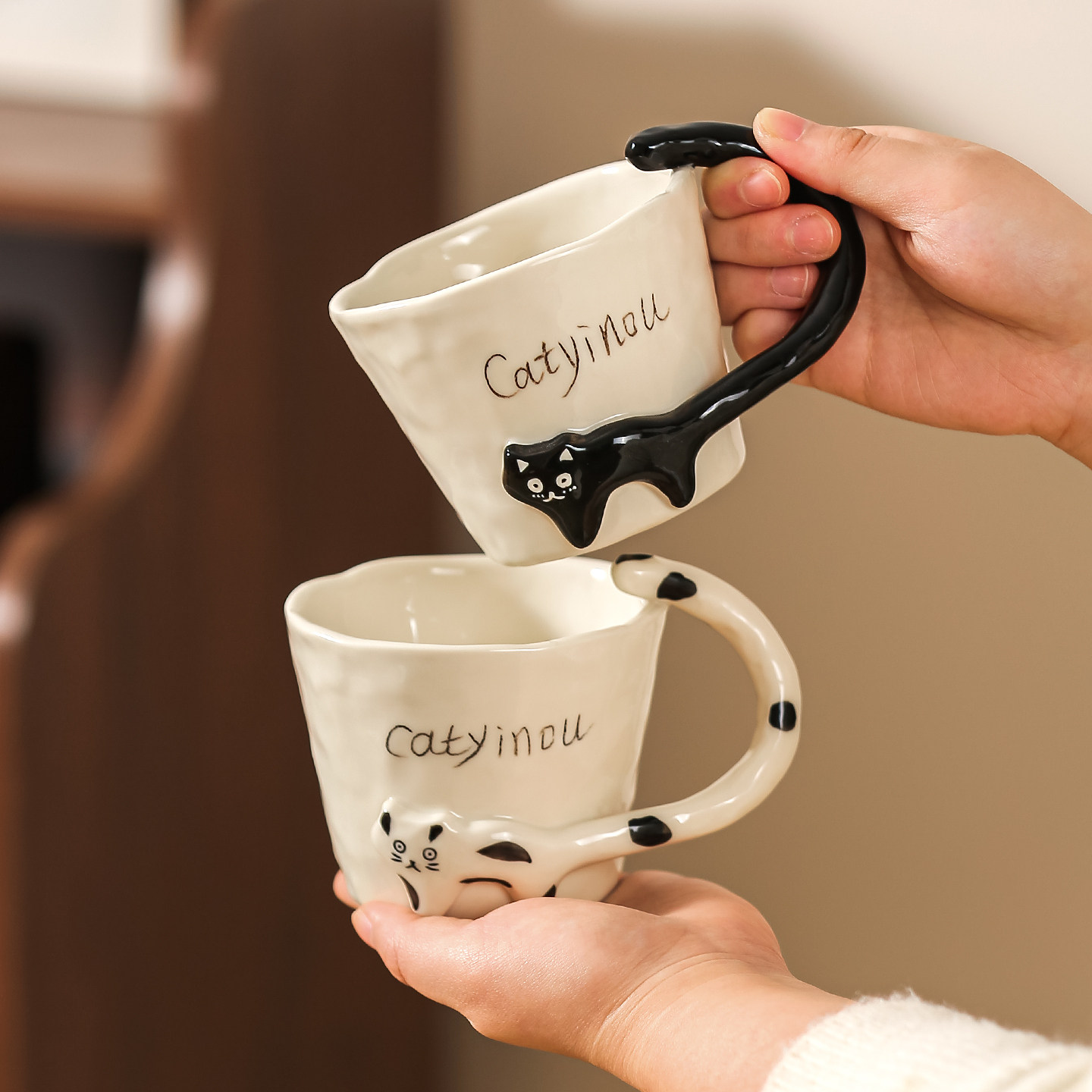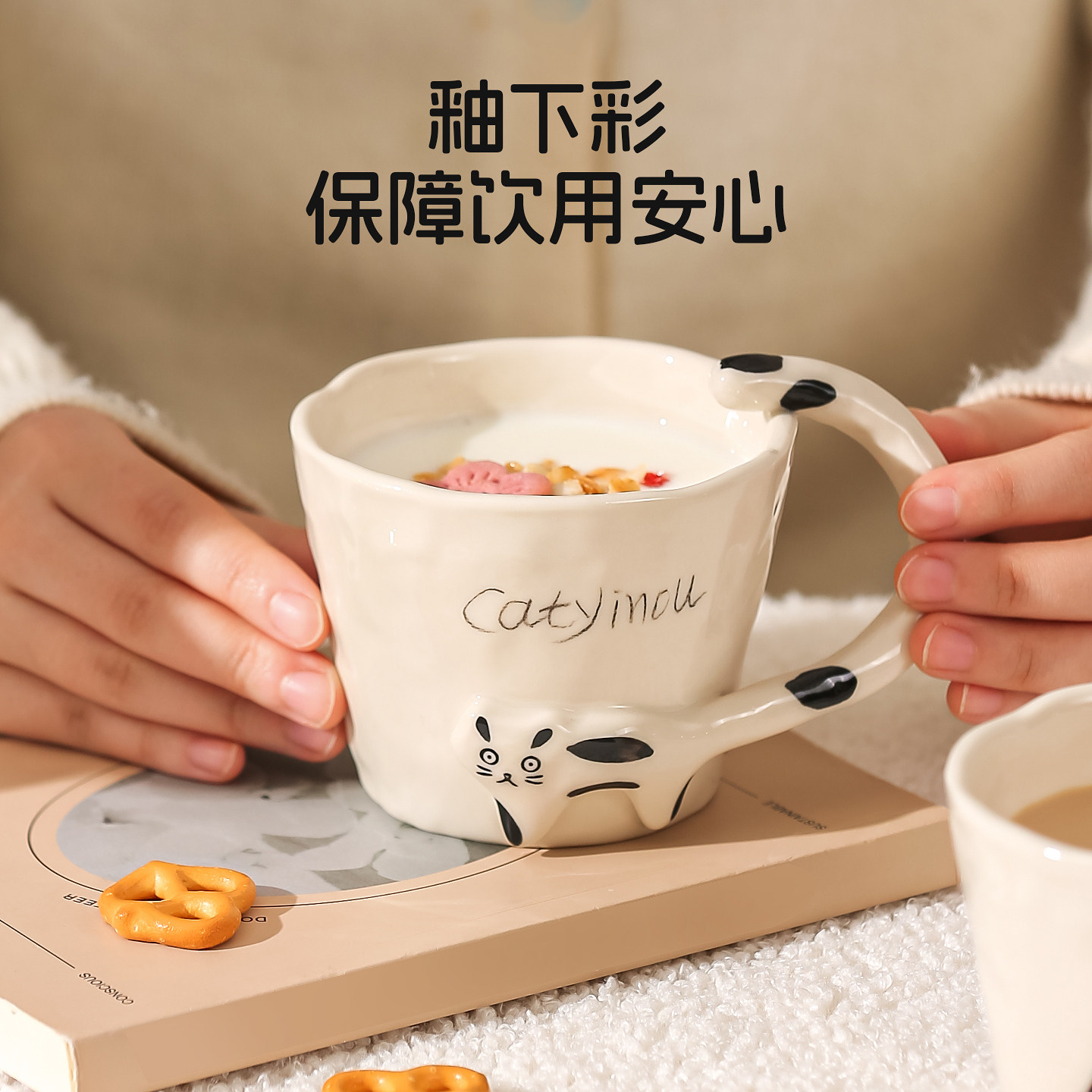川岛屋猫咪马克杯陶瓷高颜值杯子家用喝水杯办公室咖啡牛奶早餐杯