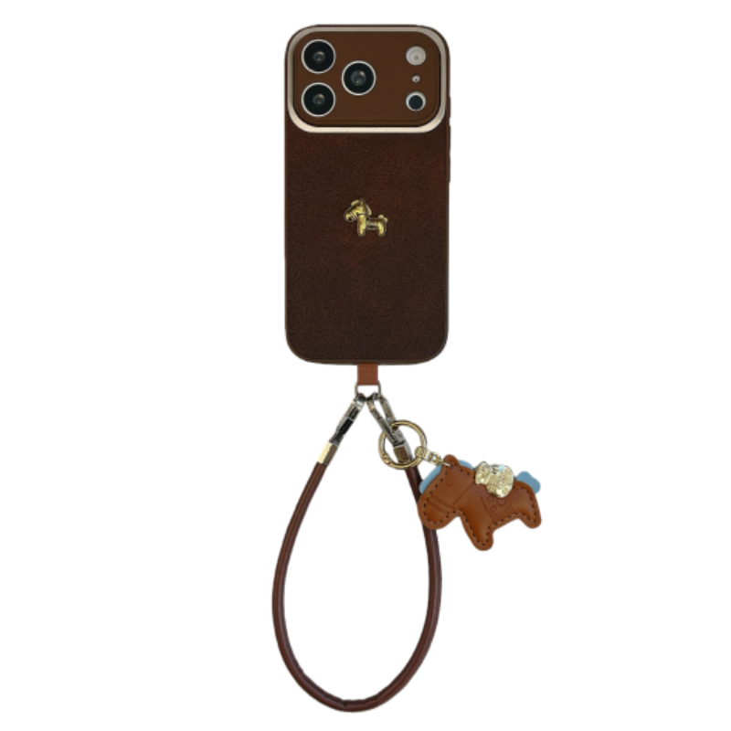 马年 复古深棕色立体小金马适用于苹果17promax手机壳iphone16月球纹15pro中国风13挂绳14全包17pro手提12/11
