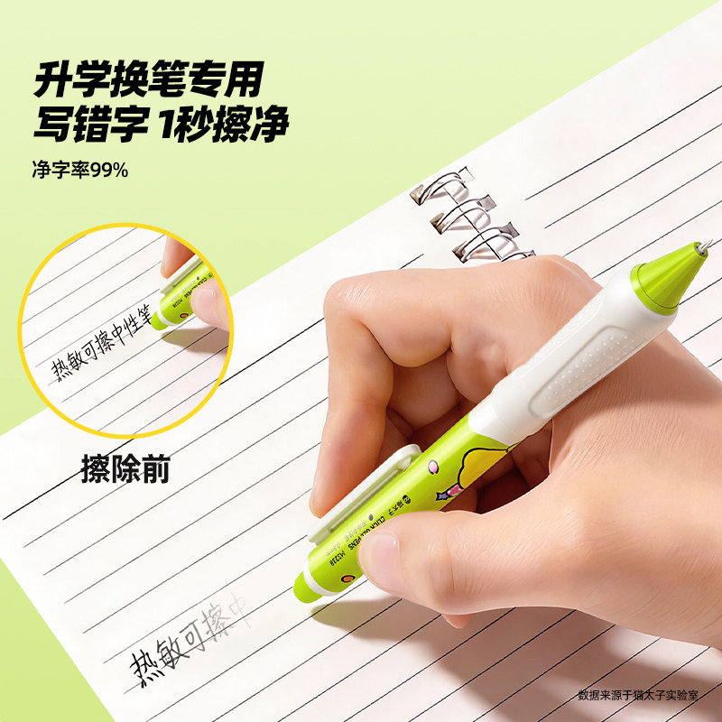 猫太子热可擦中性笔蓝黑色三年级专用按动替换芯笔头热敏可擦橡皮笔改错纠错可改正小学生学习文具用品蓝色