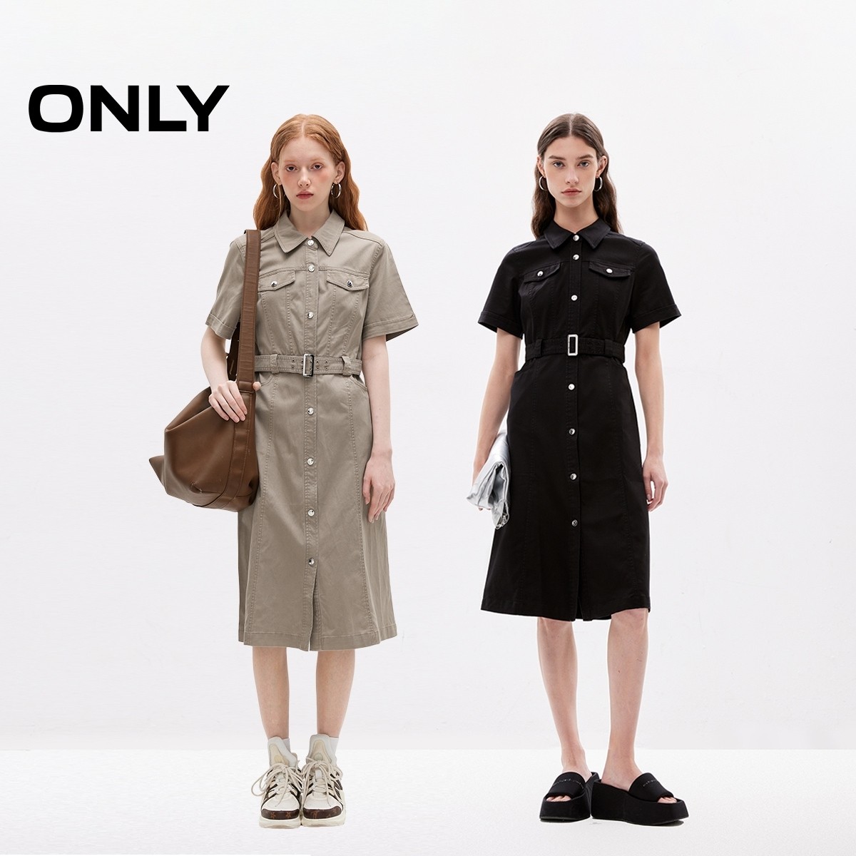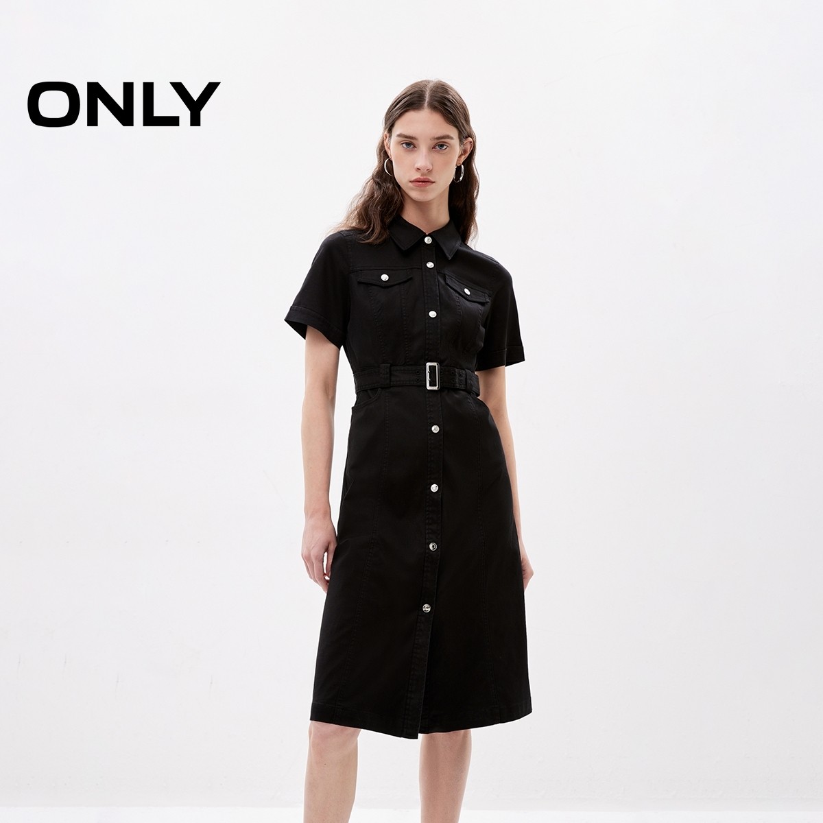 【ONLY奥莱】春夏新款时尚气质短袖显瘦中长款连衣裙女