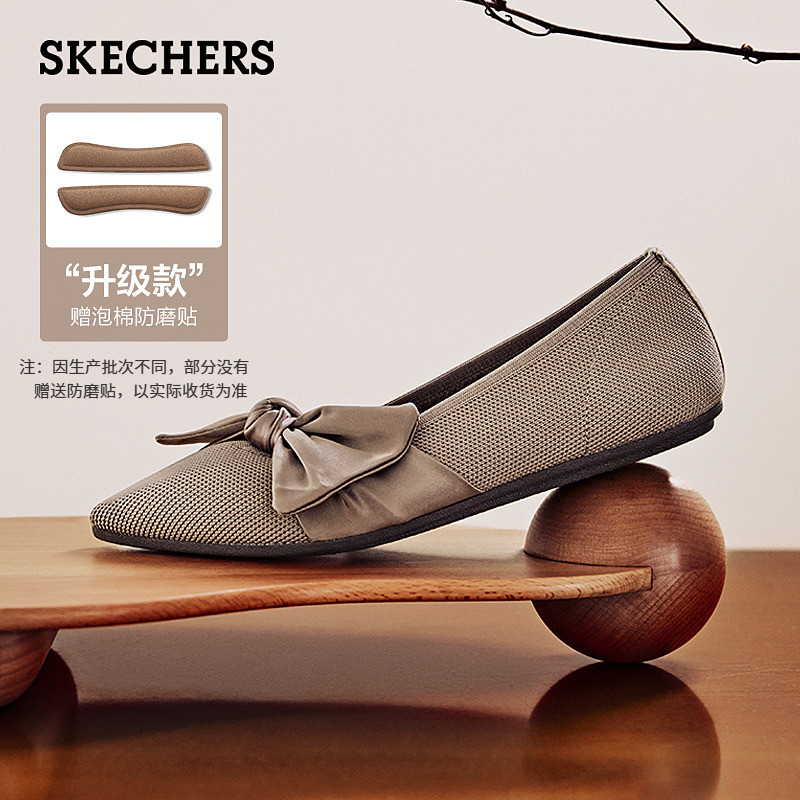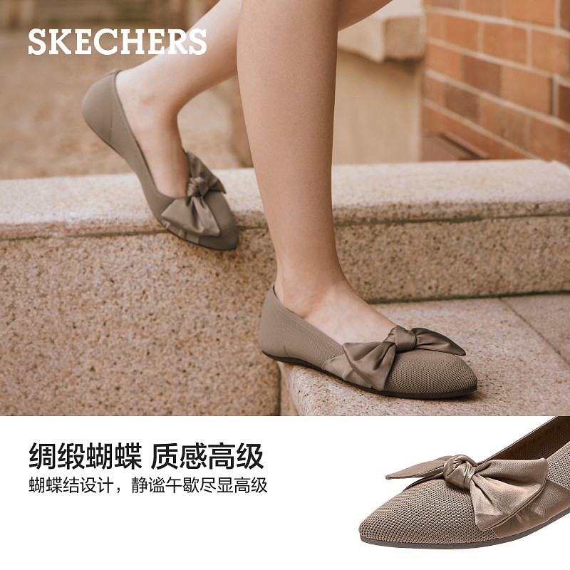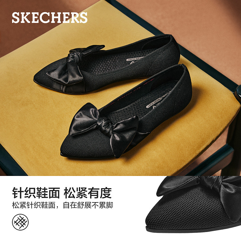 斯凯奇女蝴蝶结浅口单鞋夏季简约玛丽珍鞋时尚百搭尖头平底淑女鞋