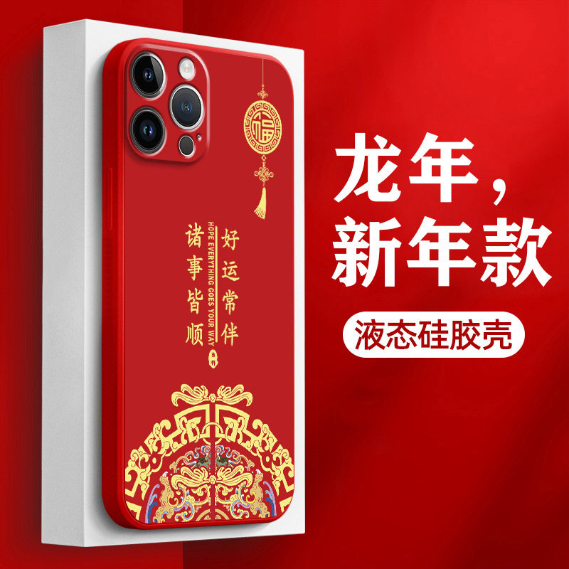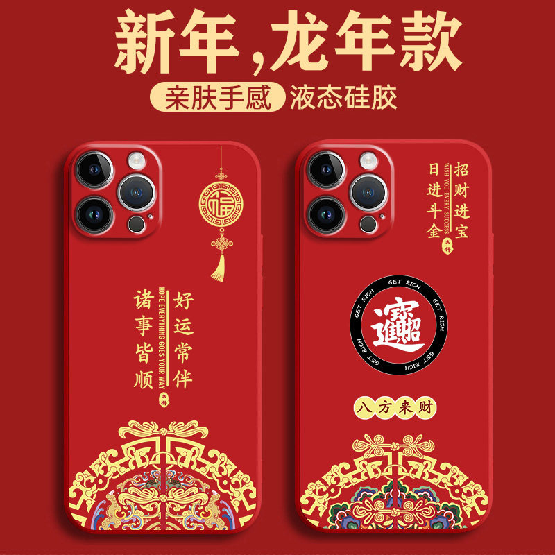 适用苹果17promax手机壳16中国风15八方来财iphone13液态硅胶14镜头全包12mini指环挂绳11新年红十四pm保护套