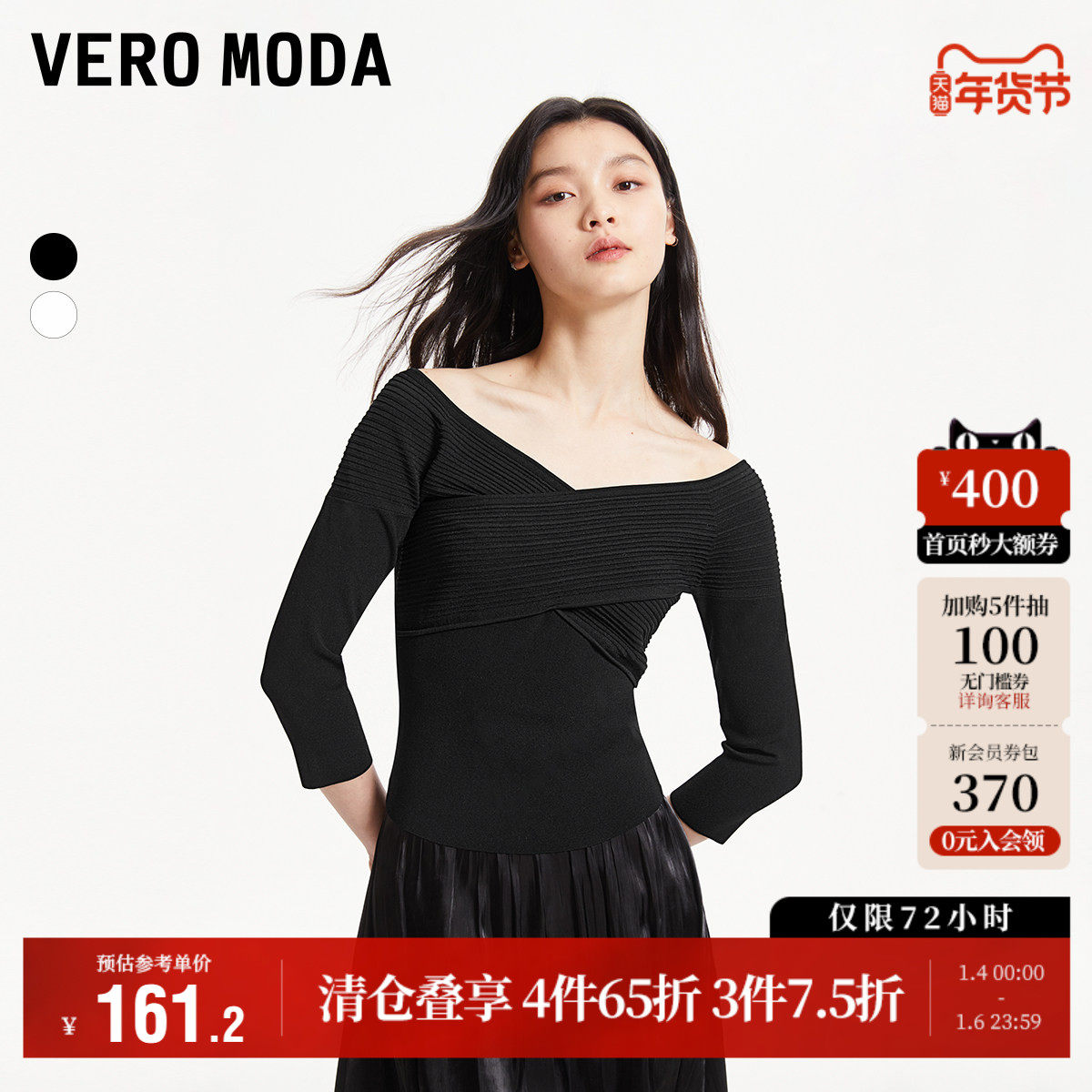 Vero Moda奥莱针织衫毛衣女秋冬新款简约优雅大领口修身上衣流行