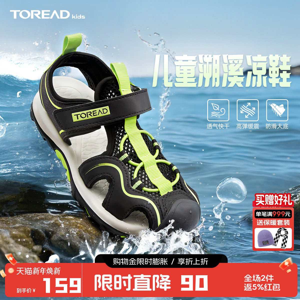 探路者儿童运动溯溪凉鞋夏季排水弹力防滑耐磨运动鞋
