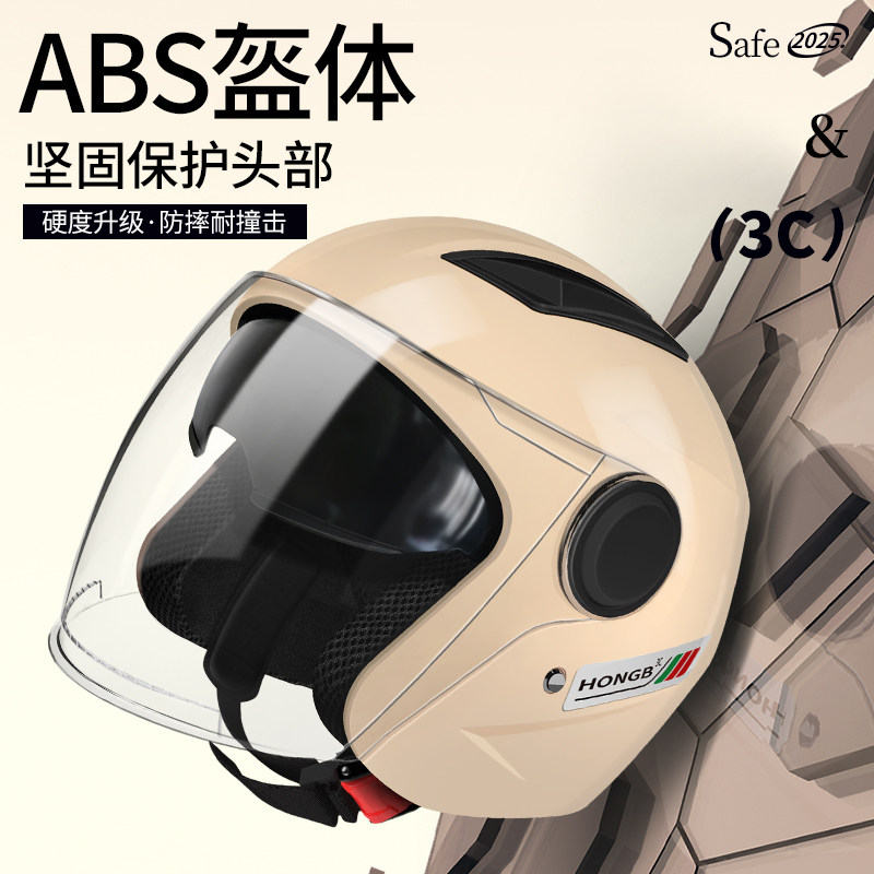 3c认证头盔电动车女秋冬四季通用摩托车半盔电瓶车安全盔双镜保暖