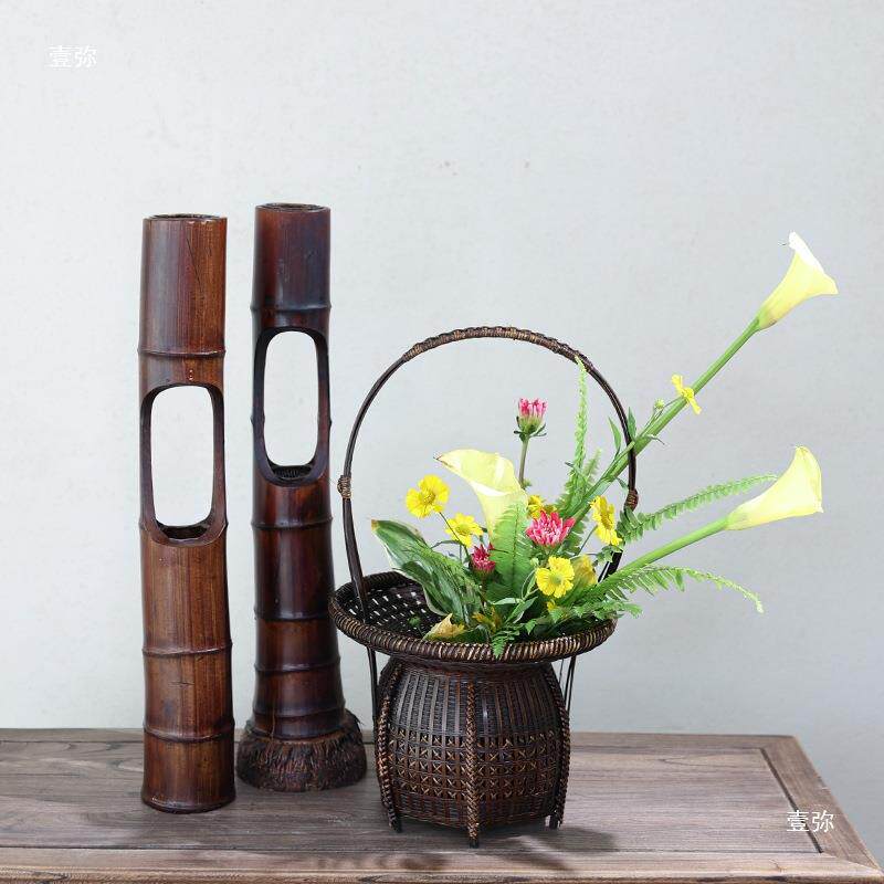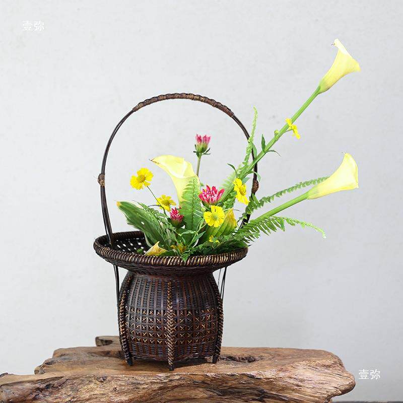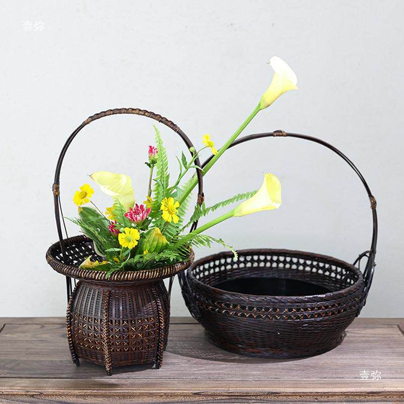 竹编竹篮民间手工大篮子开业花篮花艺新中式花器插花器皿禅意