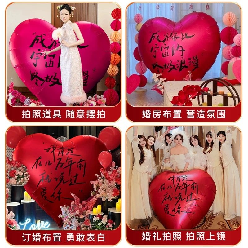 布置装饰超大爱心气球铝膜订婚拍照道具结婚用品婚礼红色氛围新婚