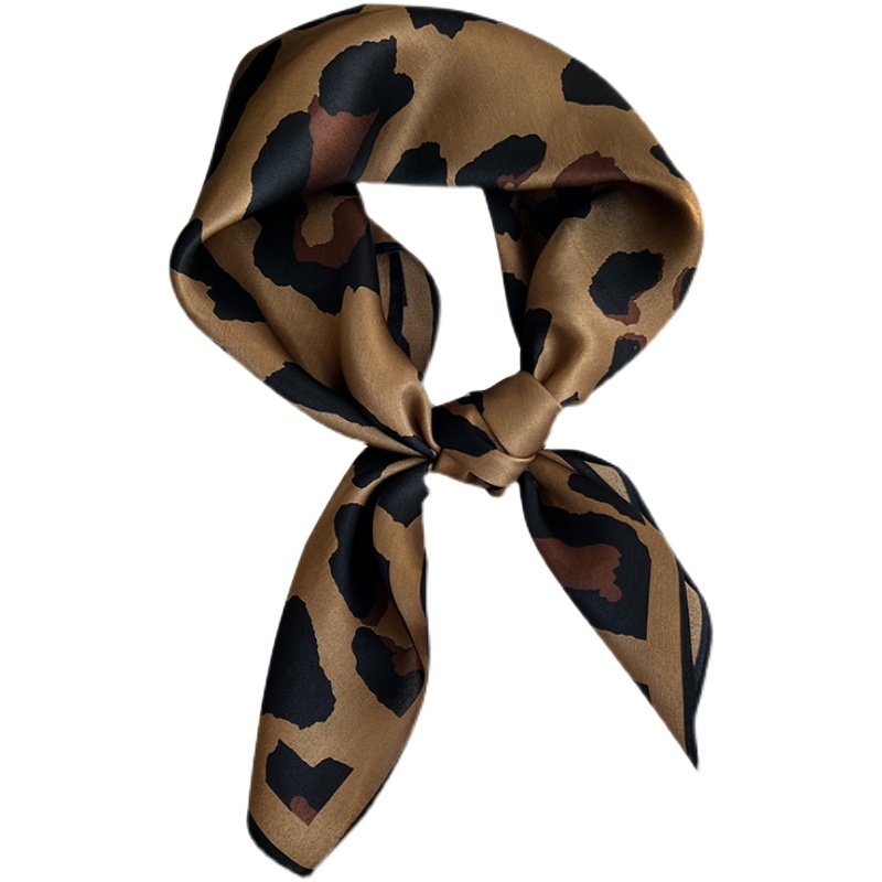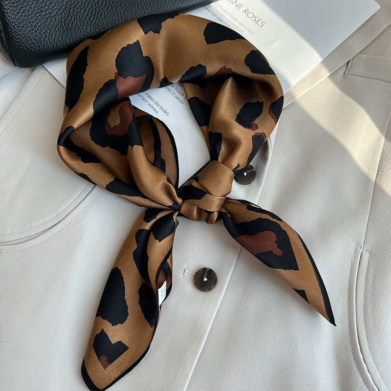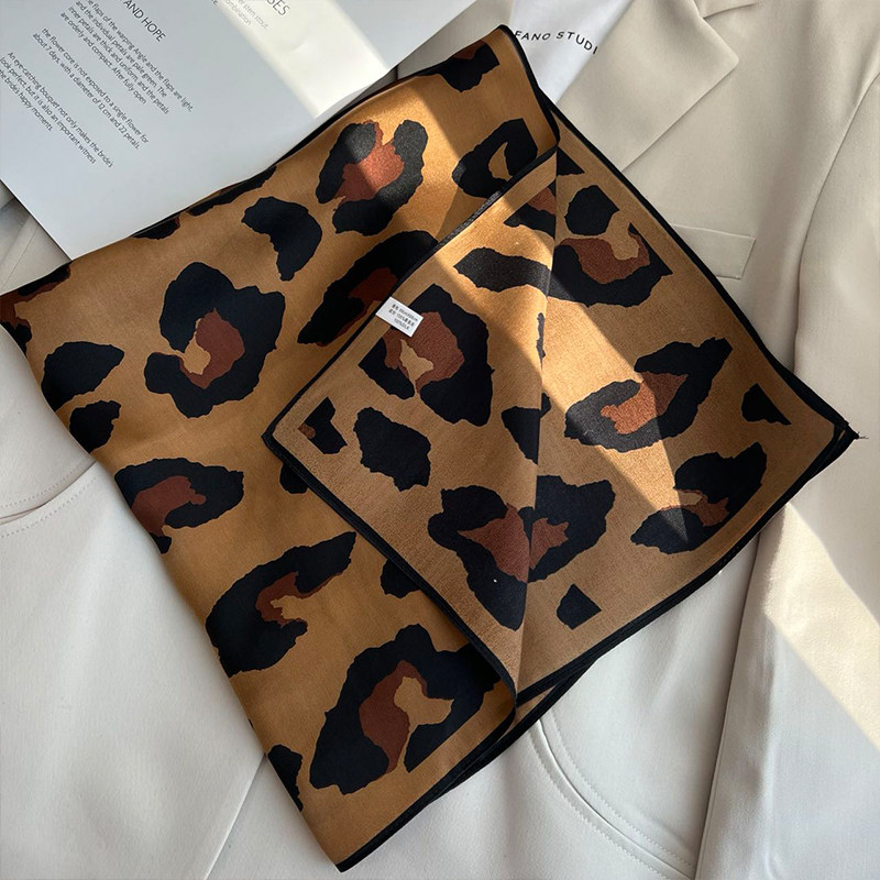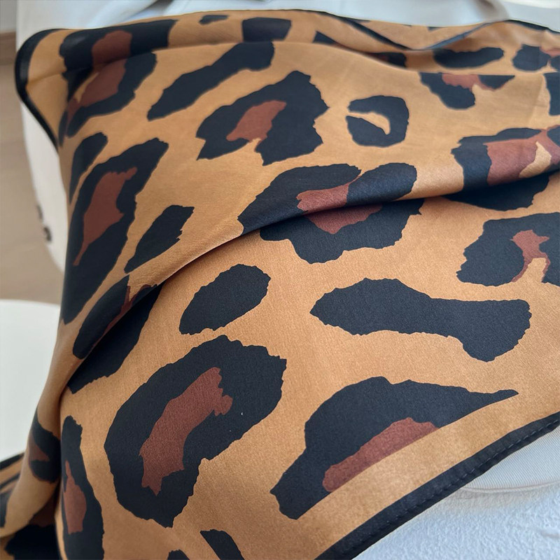70复刻经典豹纹桑蚕丝驼色百搭中方巾女春秋配西装真丝小丝巾领巾
