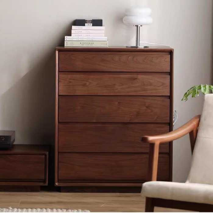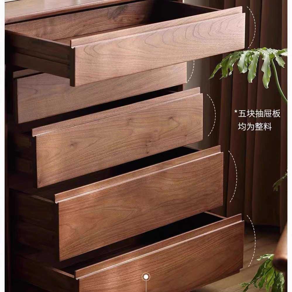 北美黑胡桃木实木五斗柜现代简约樱桃木卧室储物斗柜客厅沙发边柜