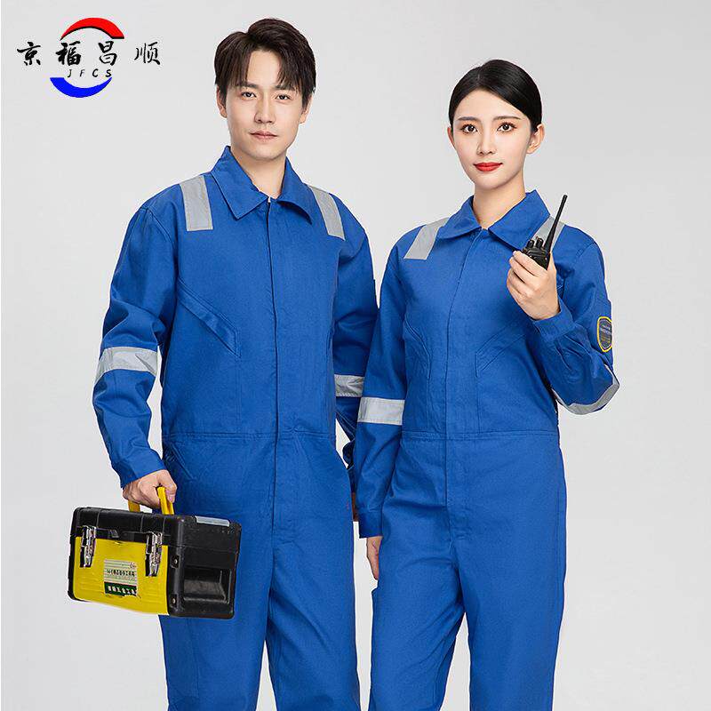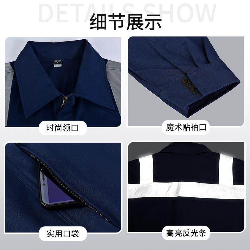 春秋连体反光条工作服套装男耐酸碱防护服阻燃加厚工装劳保服制服