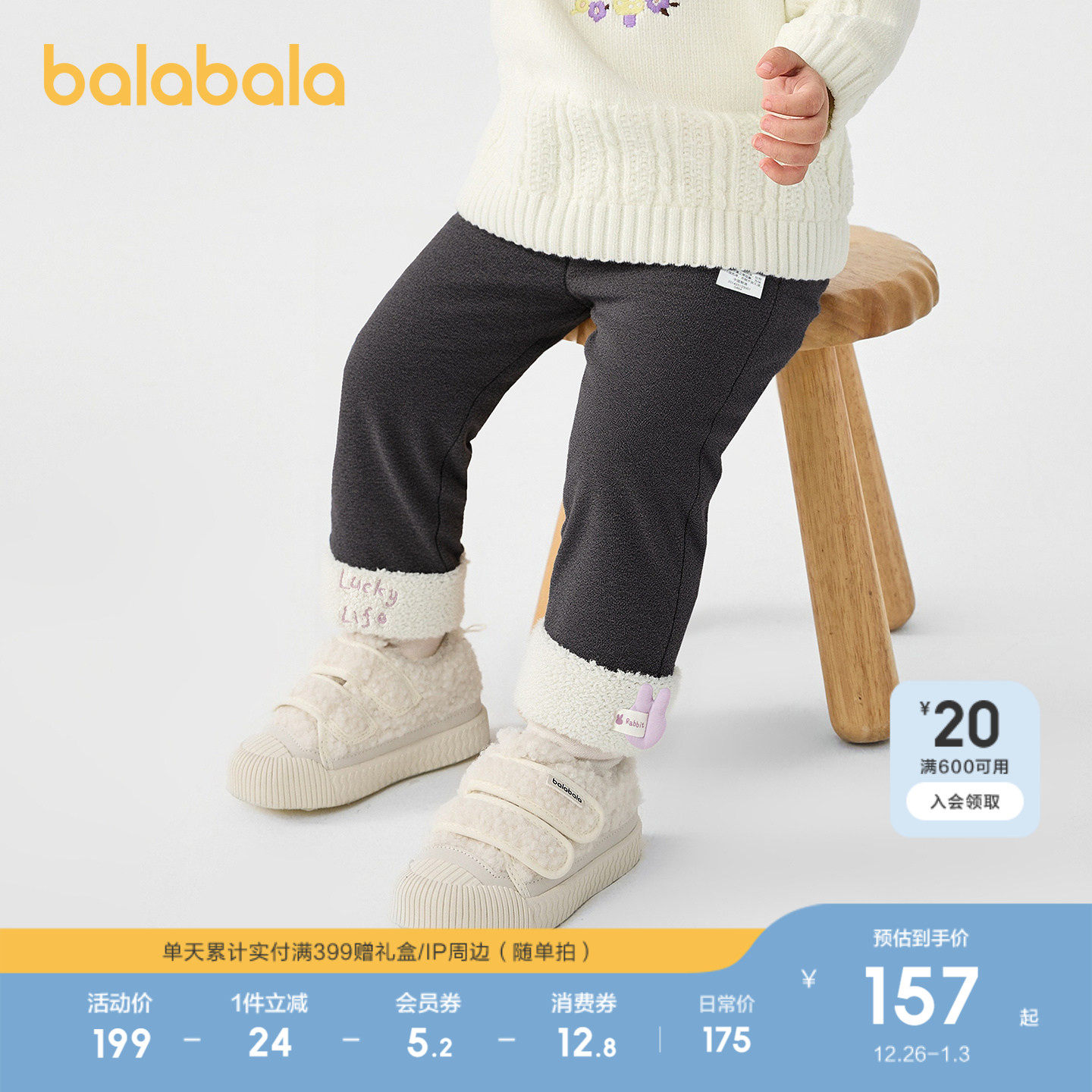 【商场同款】巴拉巴拉宝宝打底裤拼色假两件女童装秋冬2025新裤子